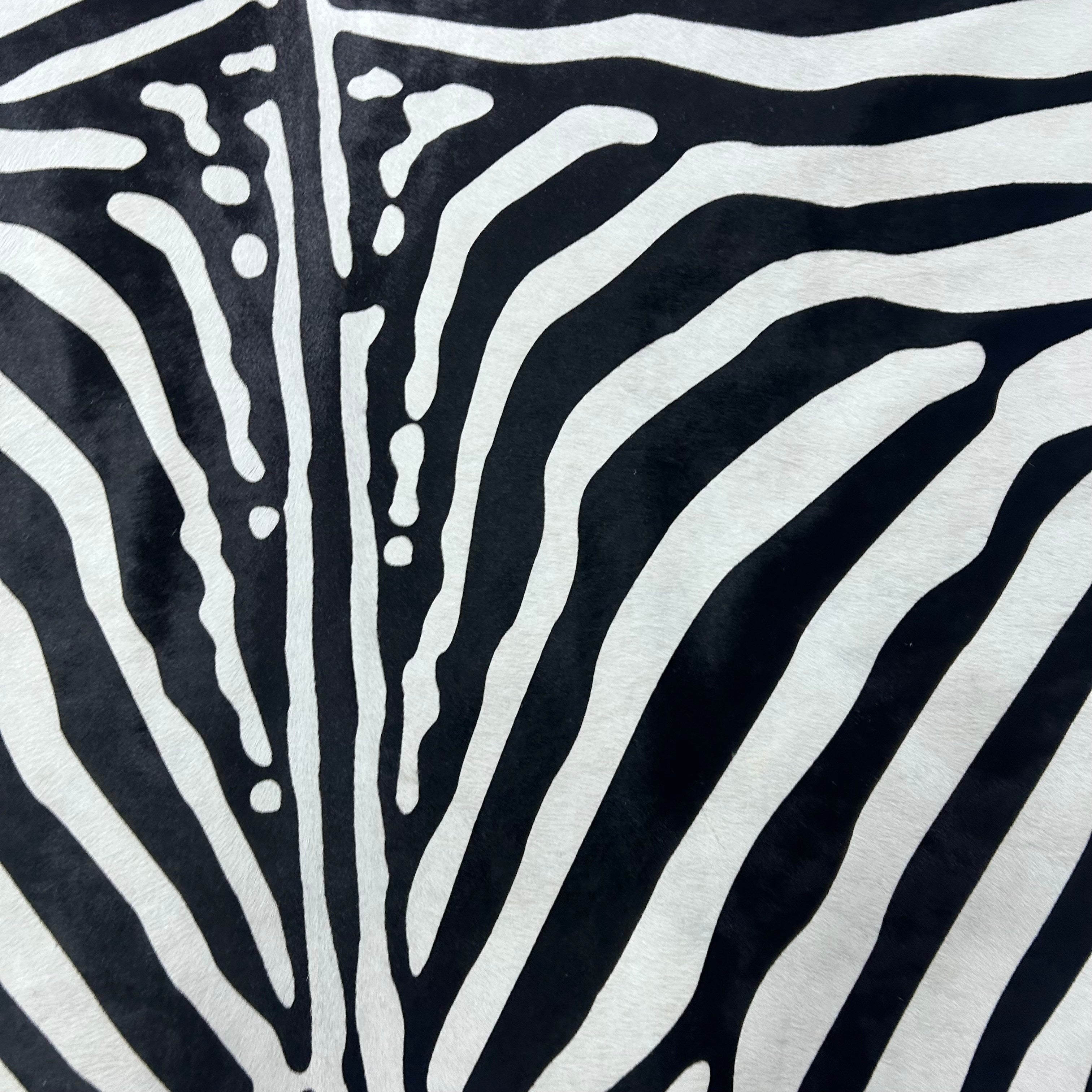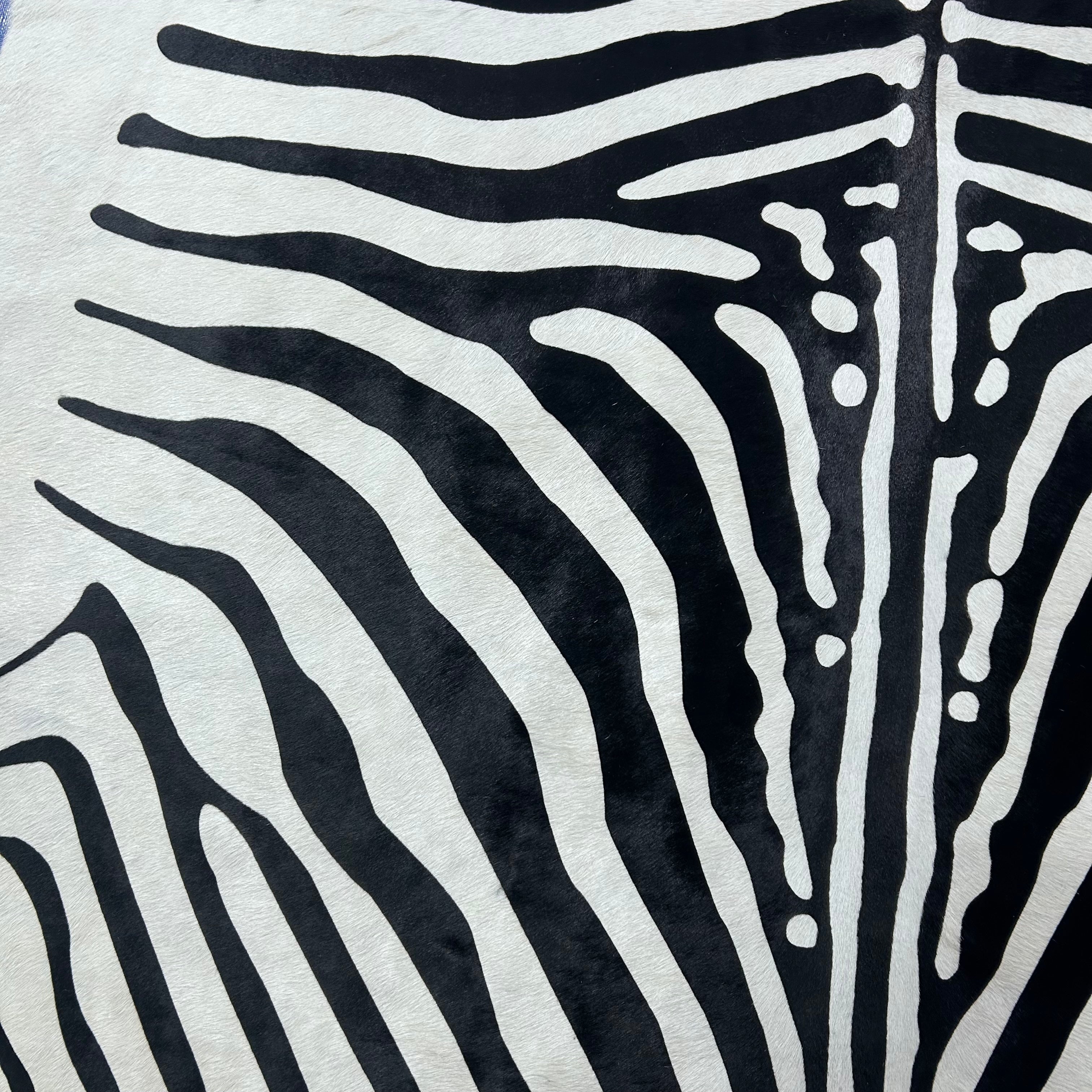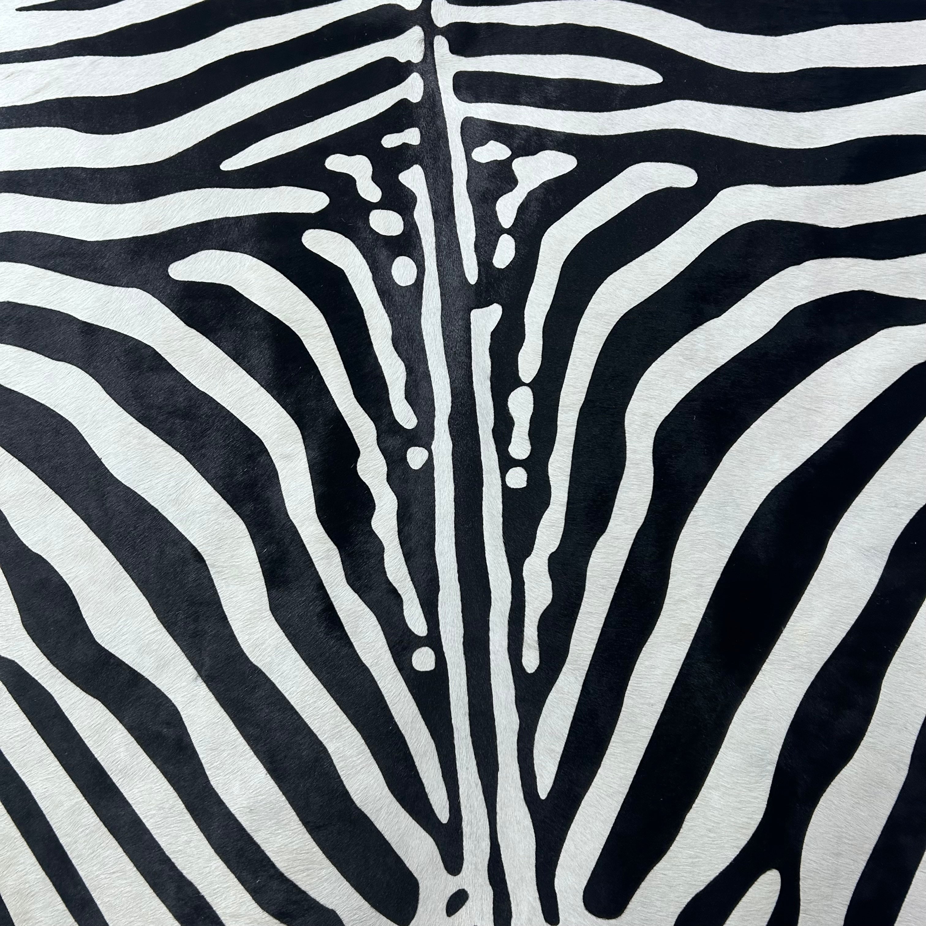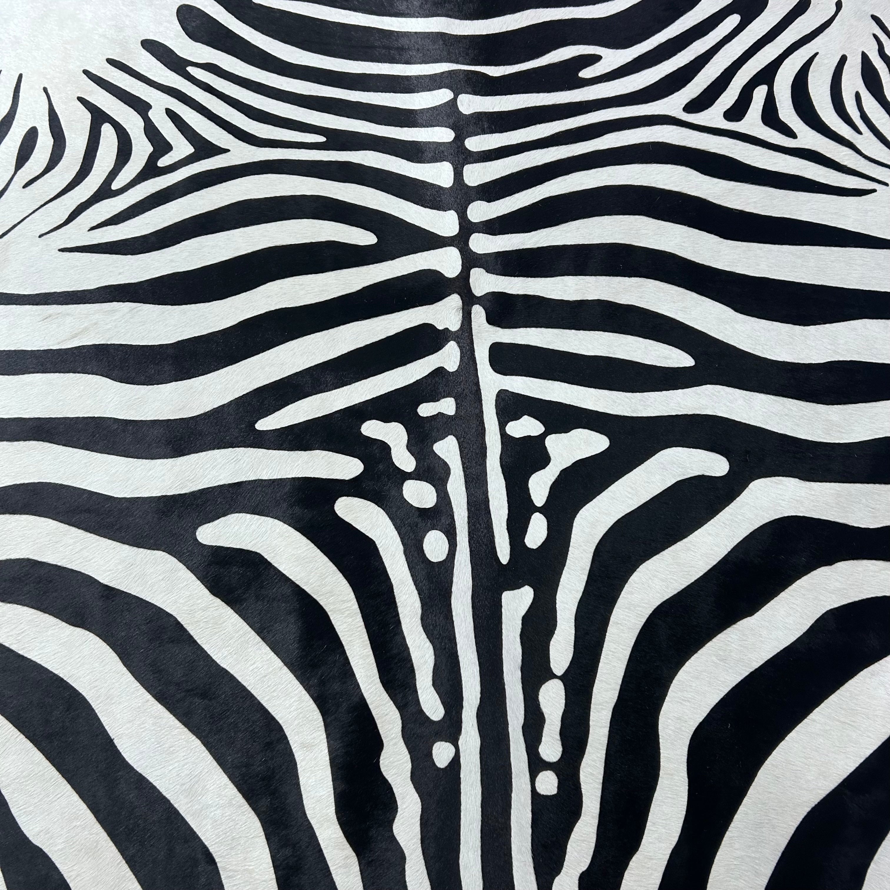 What a stunner! This is a beautiful Zebra Print Cowhide Rug. Perfectly cut!