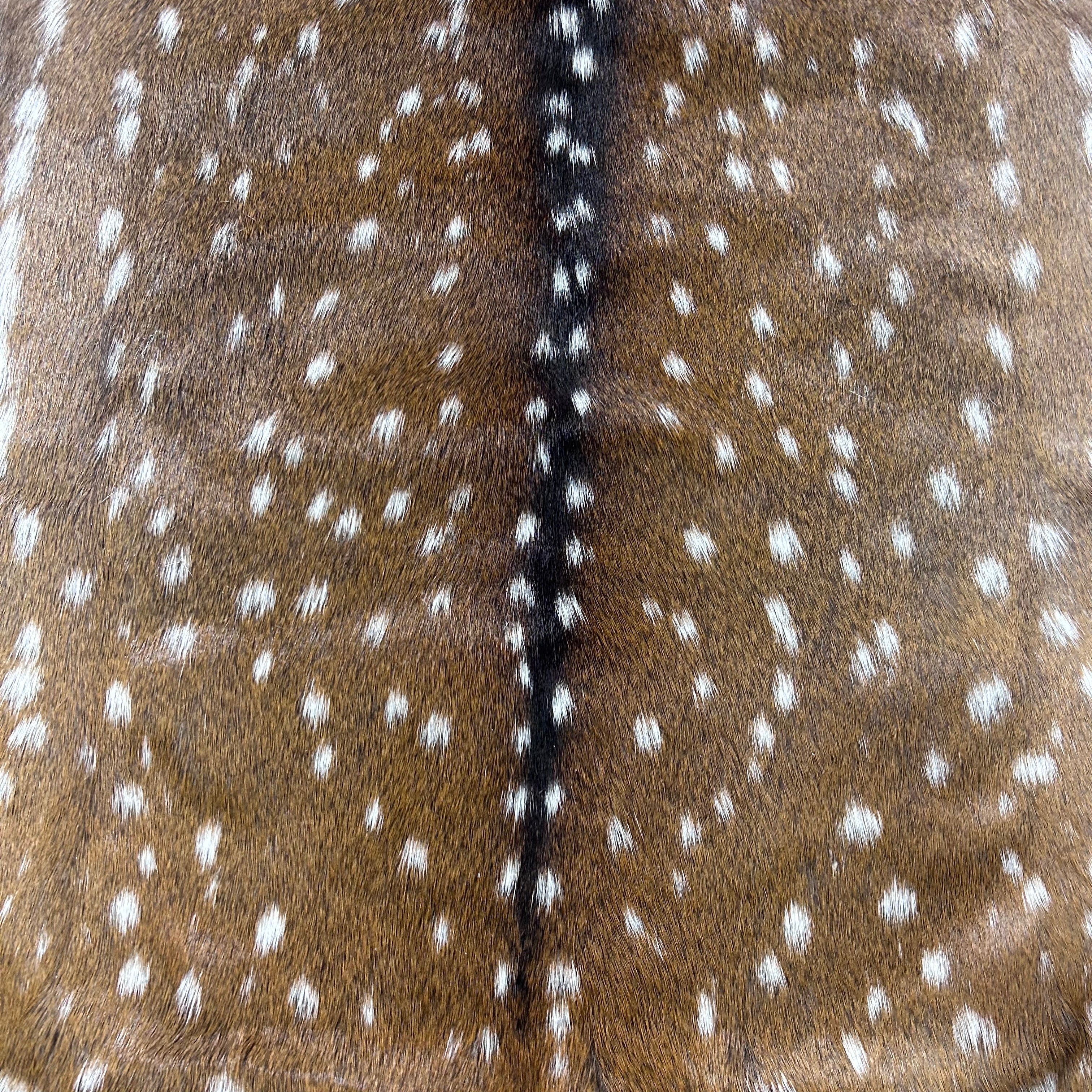This is a nice axis deer skin rug that can be used as a floor rug or to manufacture products. Many of our clients use these skins for upholstery. Please see attached pictures that show in detail the type of hair and quality of the skin.