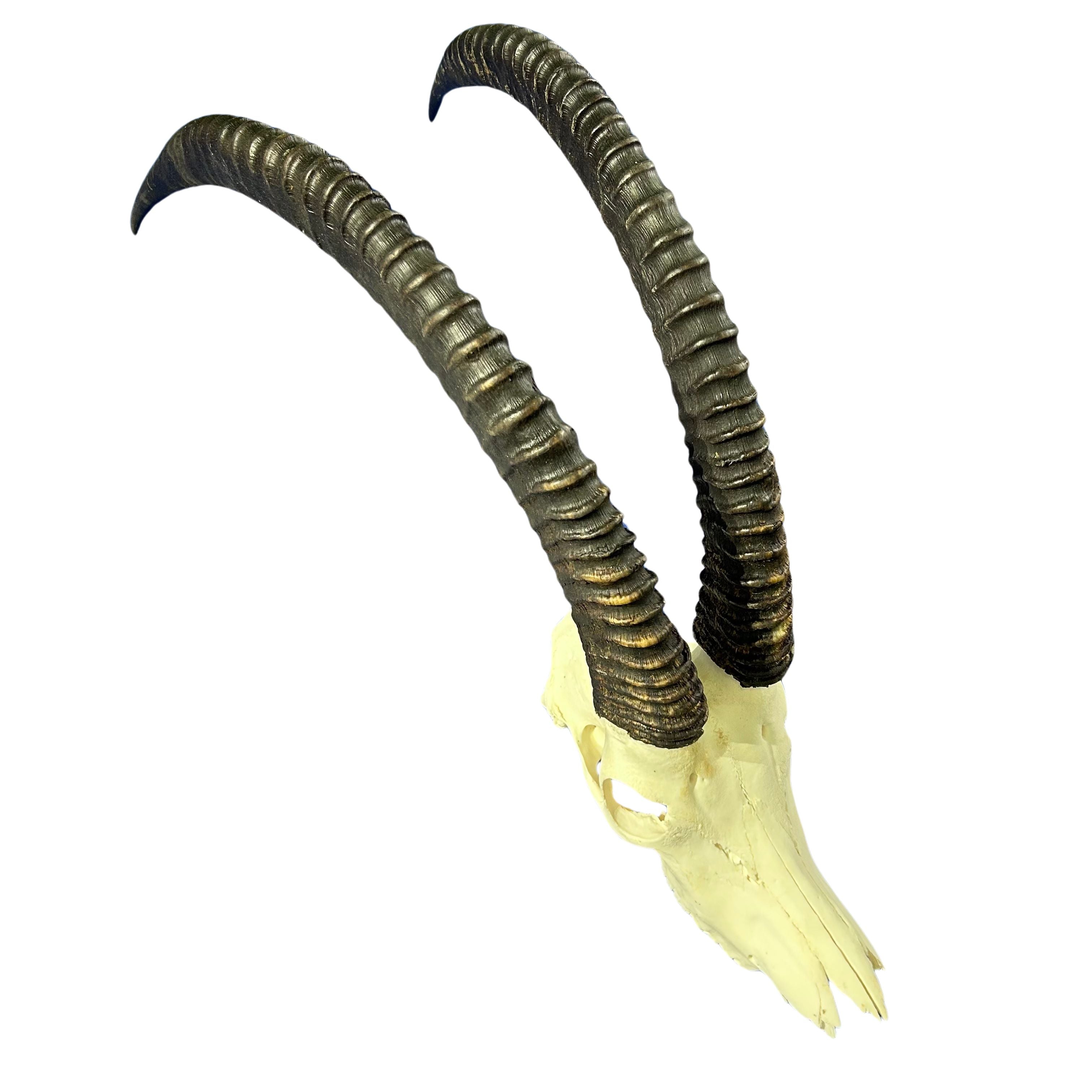 Real Sable Skull and horns. Genuine African Antelope Horns from South Africa.Obtained ethically from overpopulation herds in South Africa.All our wildlife products are properly imported into the USA and Fish & Wildlife approved. None of these animals are obtained solely for their skins, skulls or horns. They are always either obtained from population control where the meat and all parts are entirely used or found dead from natural causes in the African bush.