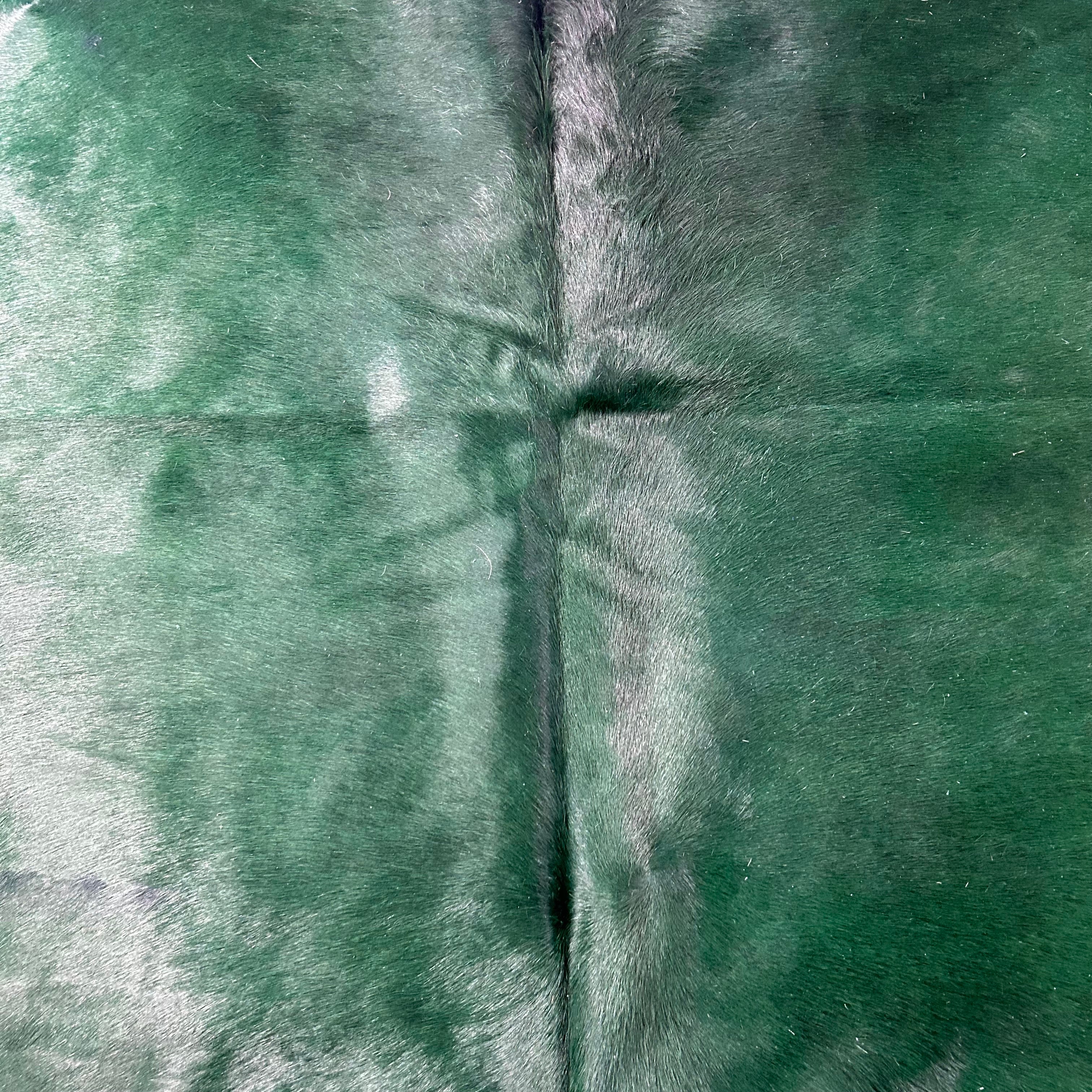 This is a beautiful Dyed Green Cowhide Rug. Please see attached pictures that show in detail the type and quality of the skin/fur. Other companies use generic photos and will ship you a similar rug. This is a photo of the exact skin we will ship and its measurements are accurate.