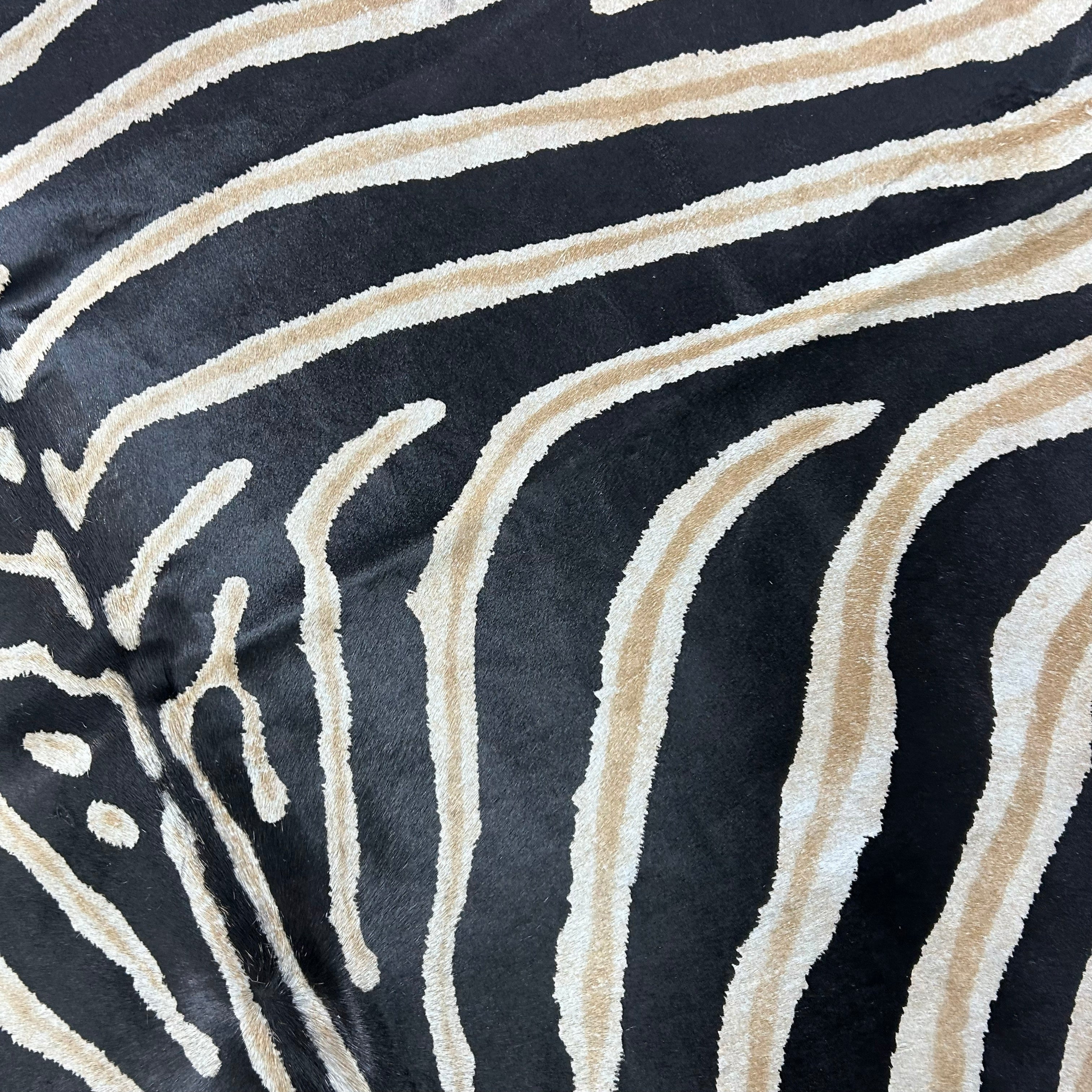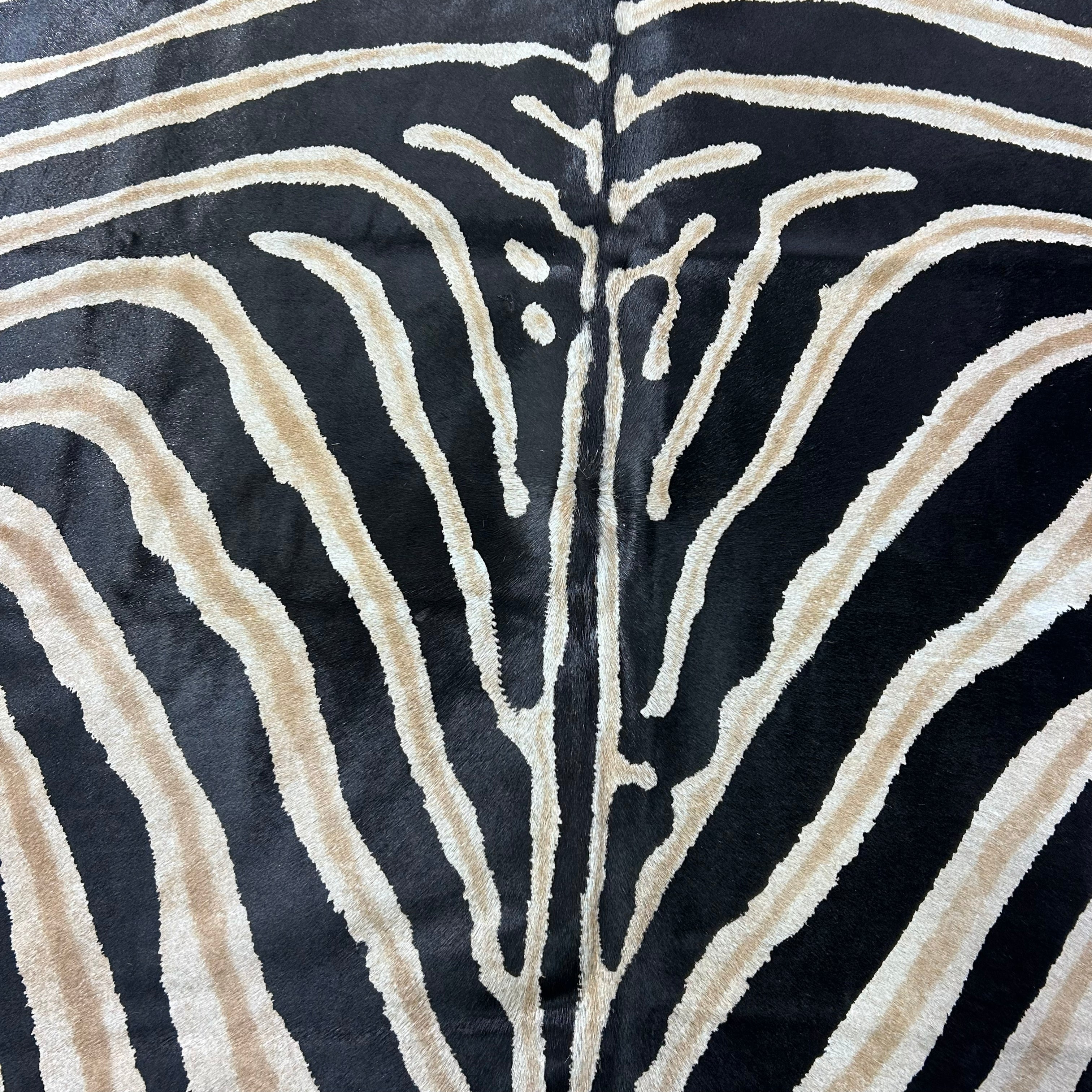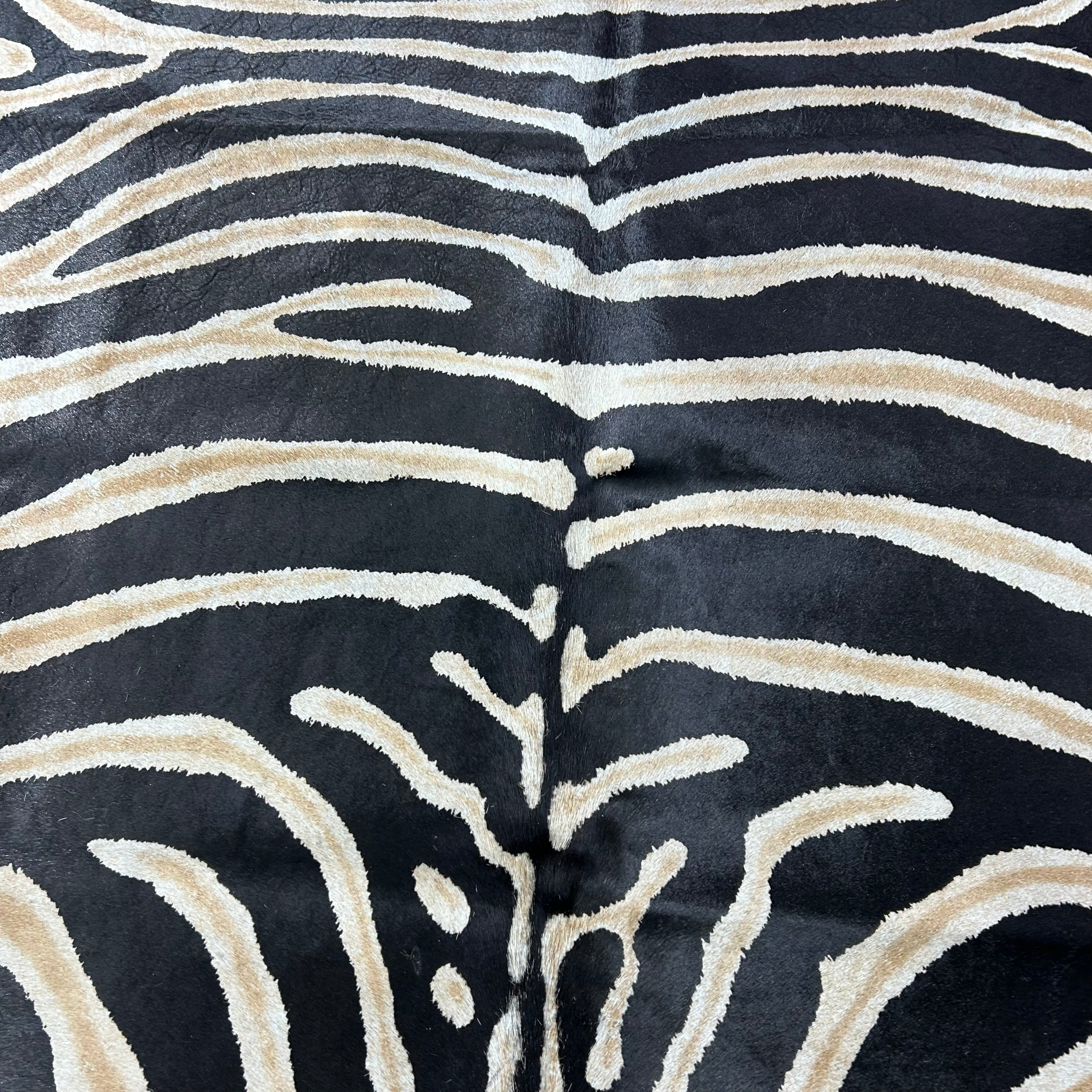 What a stunner! This is a beautiful Zebra Print Cowhide Rug. Perfectly cut!