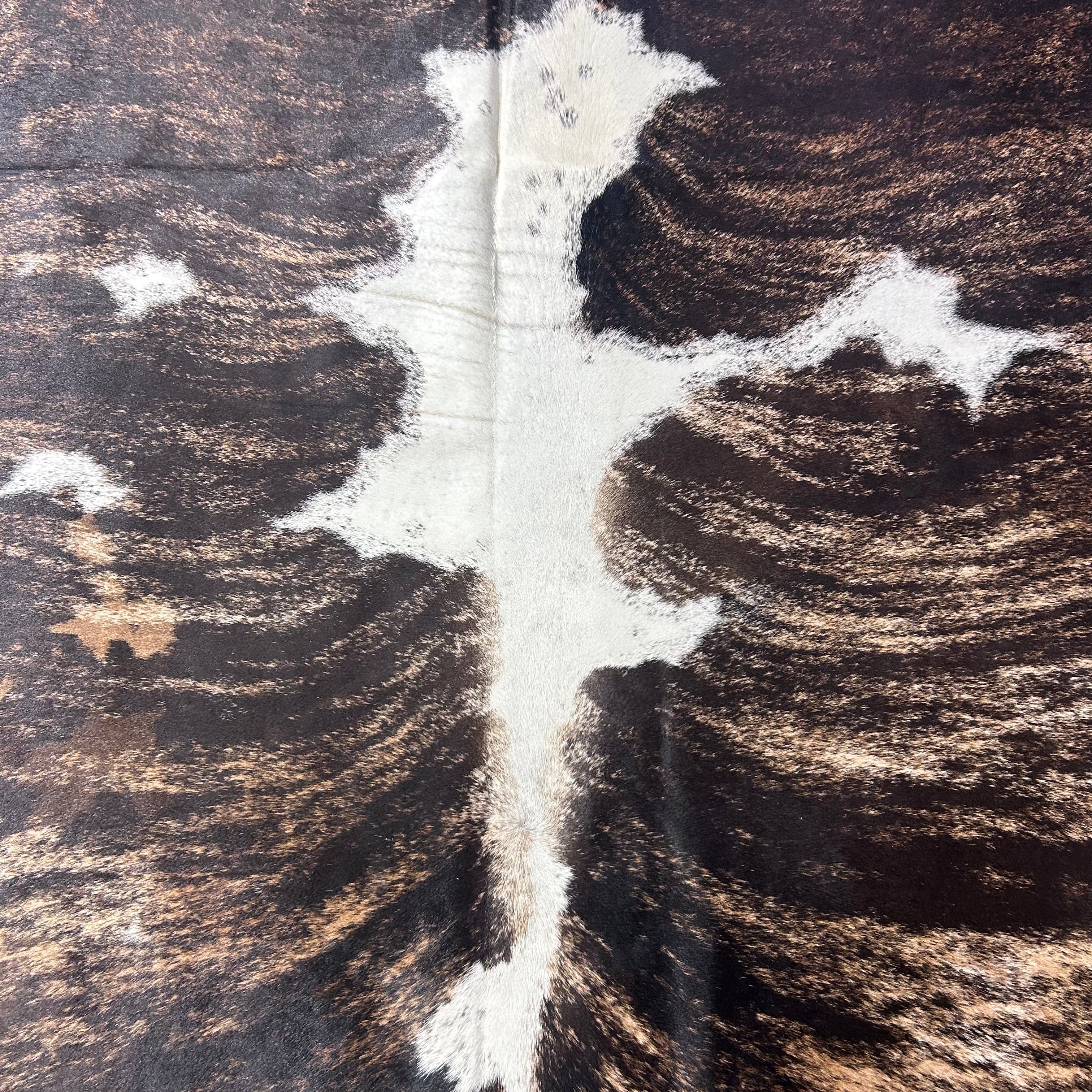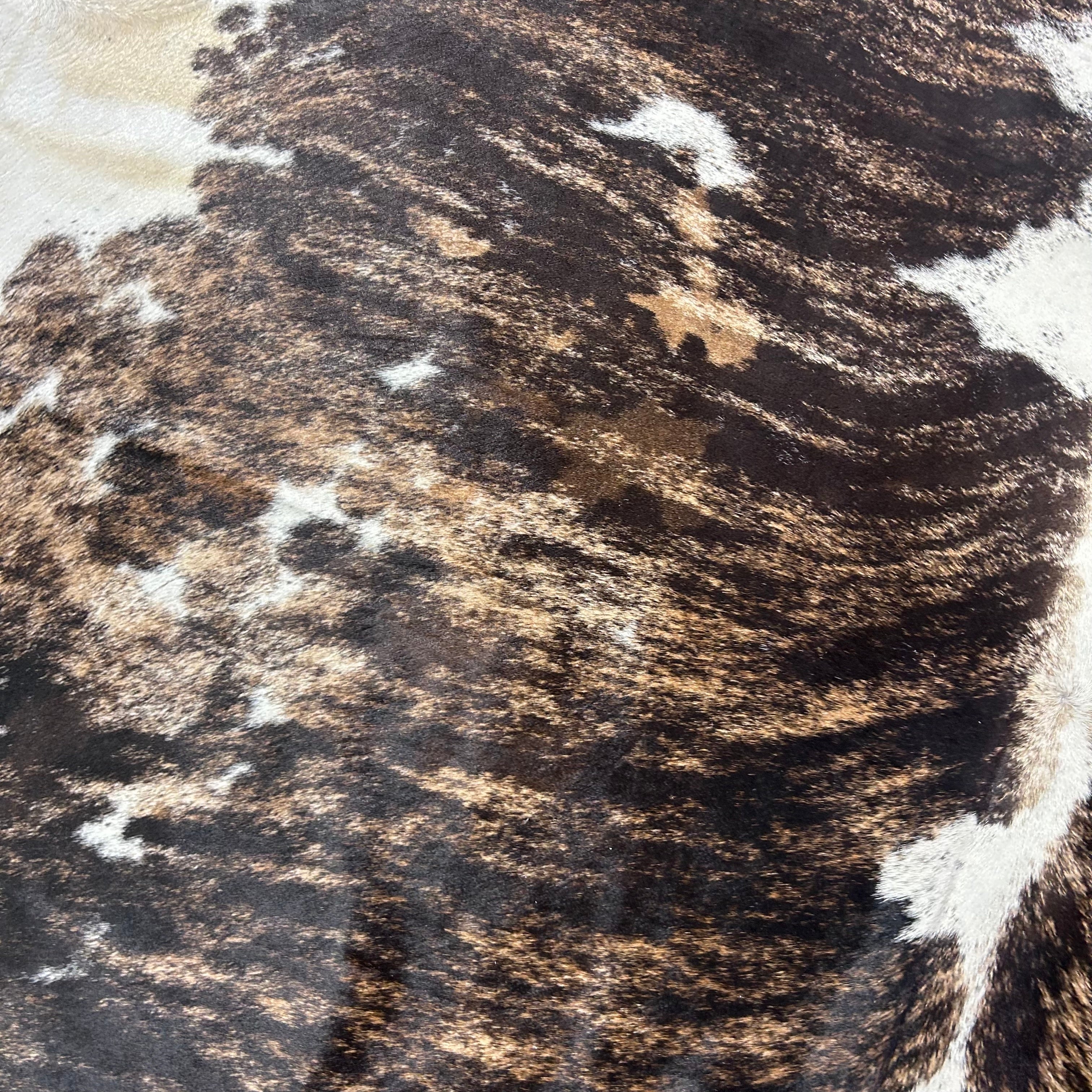 Elevate your space with our Brindle Cowhide Rug, Hand-selected for its high quality, this cowhide rug brings a touch of rustic elegance to your home.Other companies use generic photos and will ship you a similar rug. This is a photo of the exact skin we will ship and its measurements are accurate.