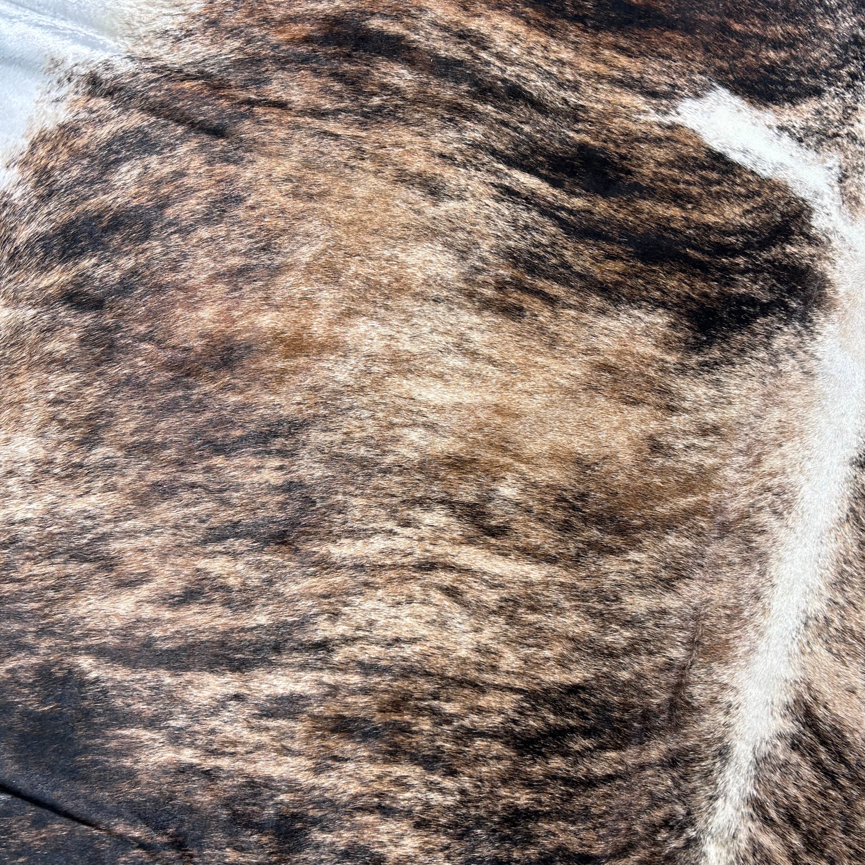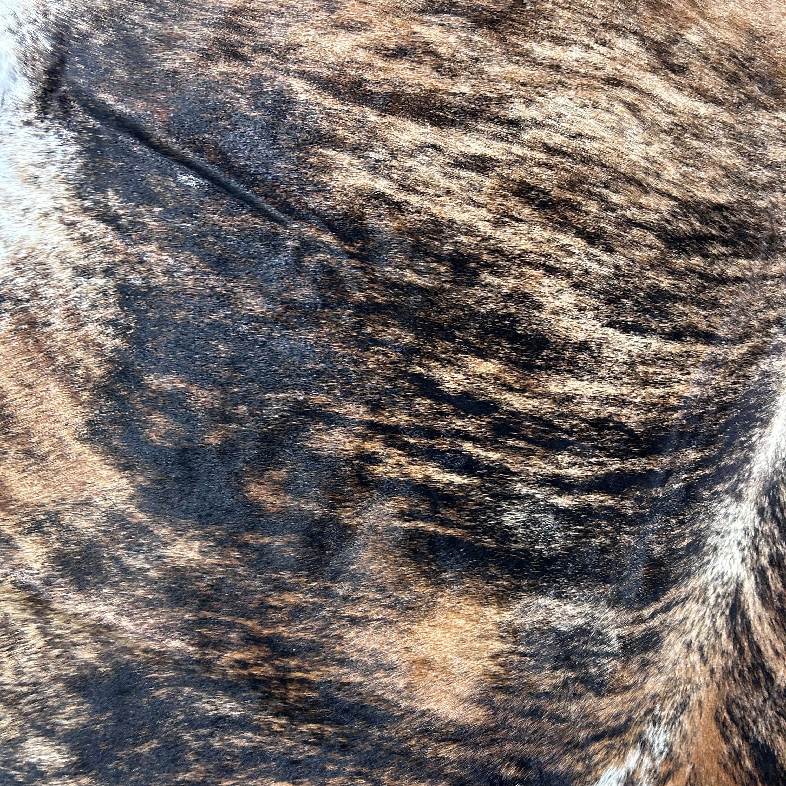 Transform your home with our Brindle Cowhide Rug, carefully hand-picked for its good quality. This cowhide rug adds a charming touch of rustic beauty to any room. Unlike other companies that use generic photos, we provide an accurate photo of the exact rug we will ship, including its precise measurements. Featuring a lighter dorsal, this rug is guaranteed to elevate your space.