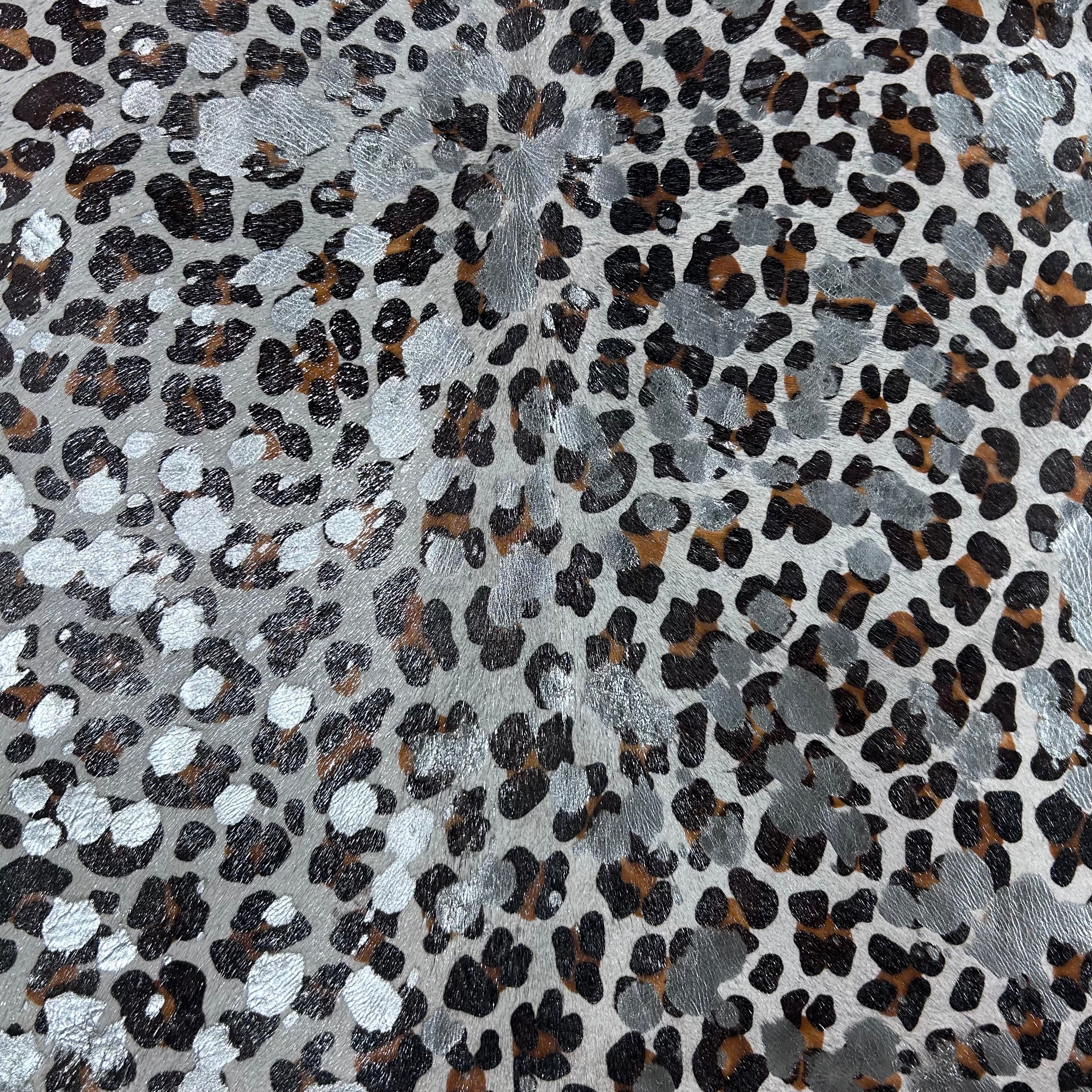 Leopard Print Calf Skin with Silver Metallic Acid Washed Size: 40x33" Z-070