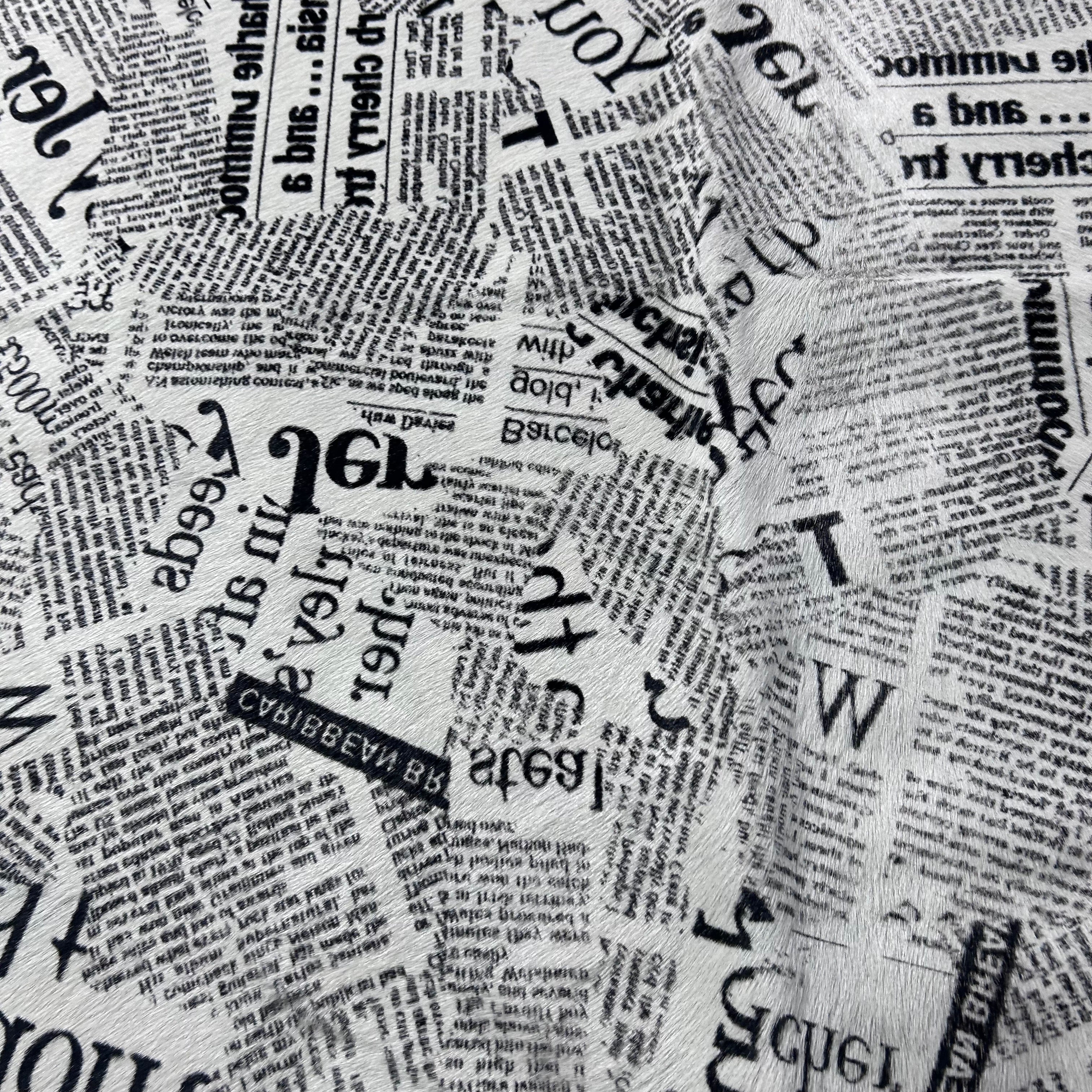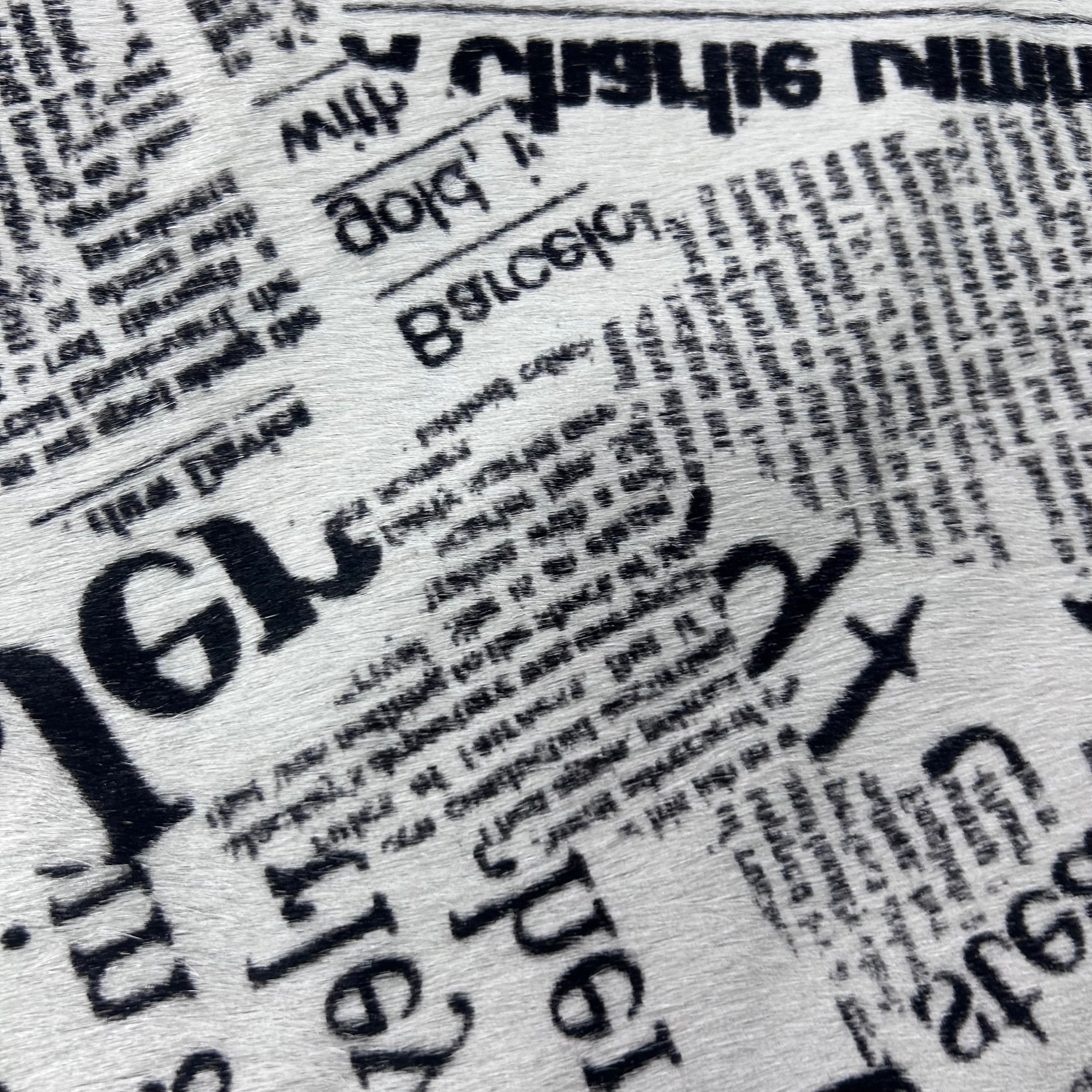 Behold, the trendiest addition to your home decor - the Newspaper Print Cowhide Rug. Get ready to add some serious style (and humor) to your space!Other companies use generic photos and will ship you a similar rug. This is a photo of the exact skin we will ship and its measurements are accurate.