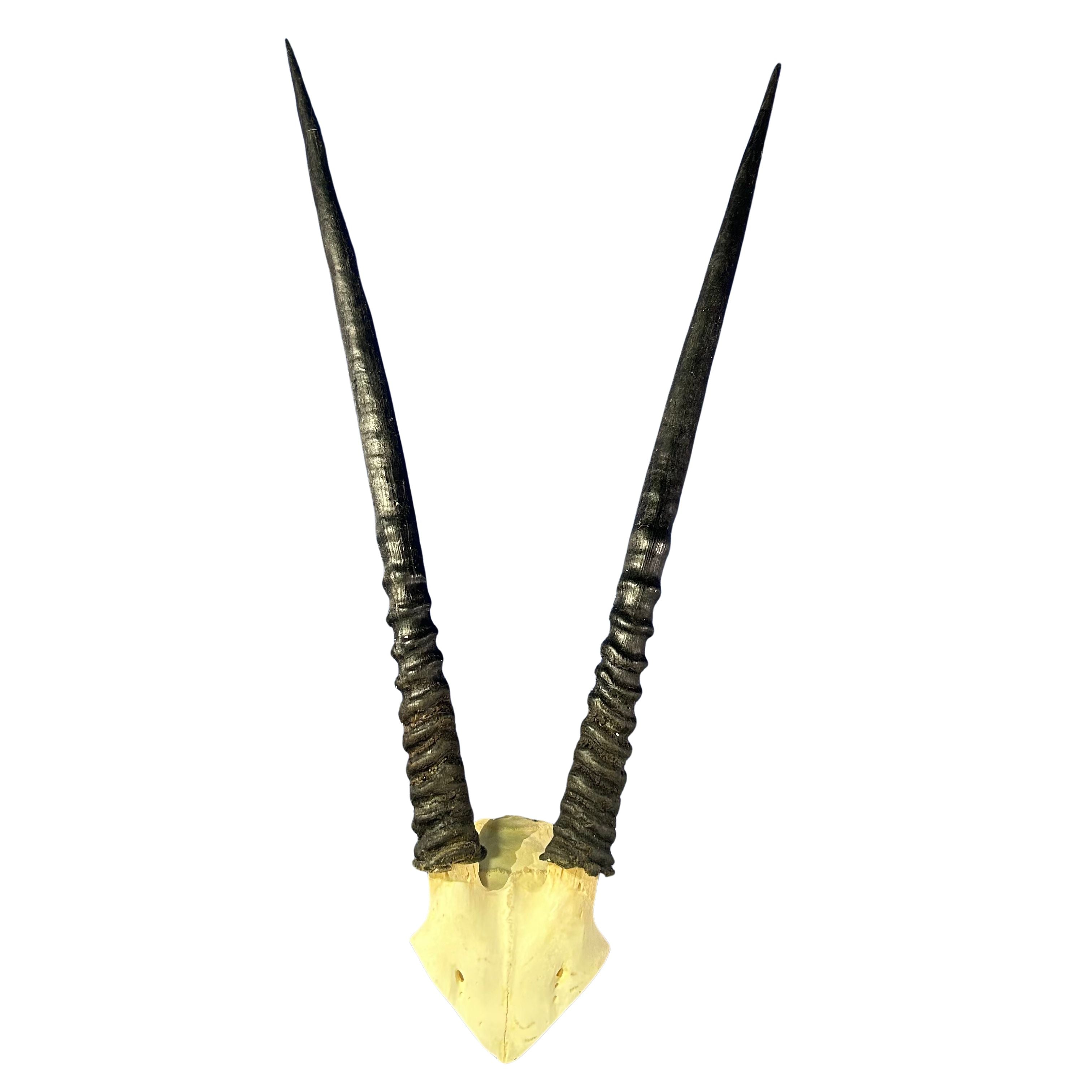 Genuine Gemsbok Skull. The gemsbok, gemsbok or South African oryx is a large antelope in the genus Oryx. It is native to the arid regions of Southern Africa, such as the Kalahari Desert. Some authorities formerly included the East African oryx as a subspecies.