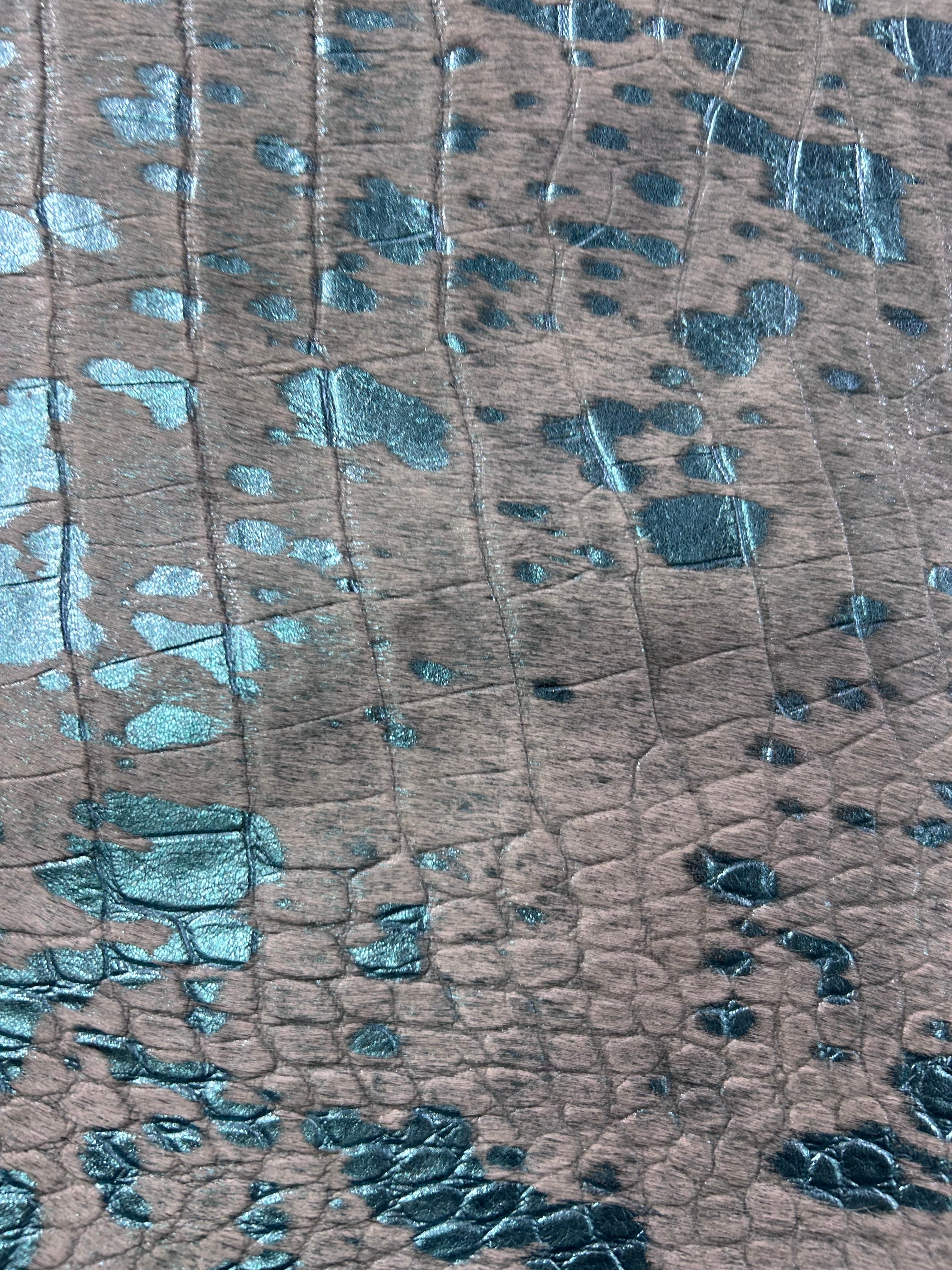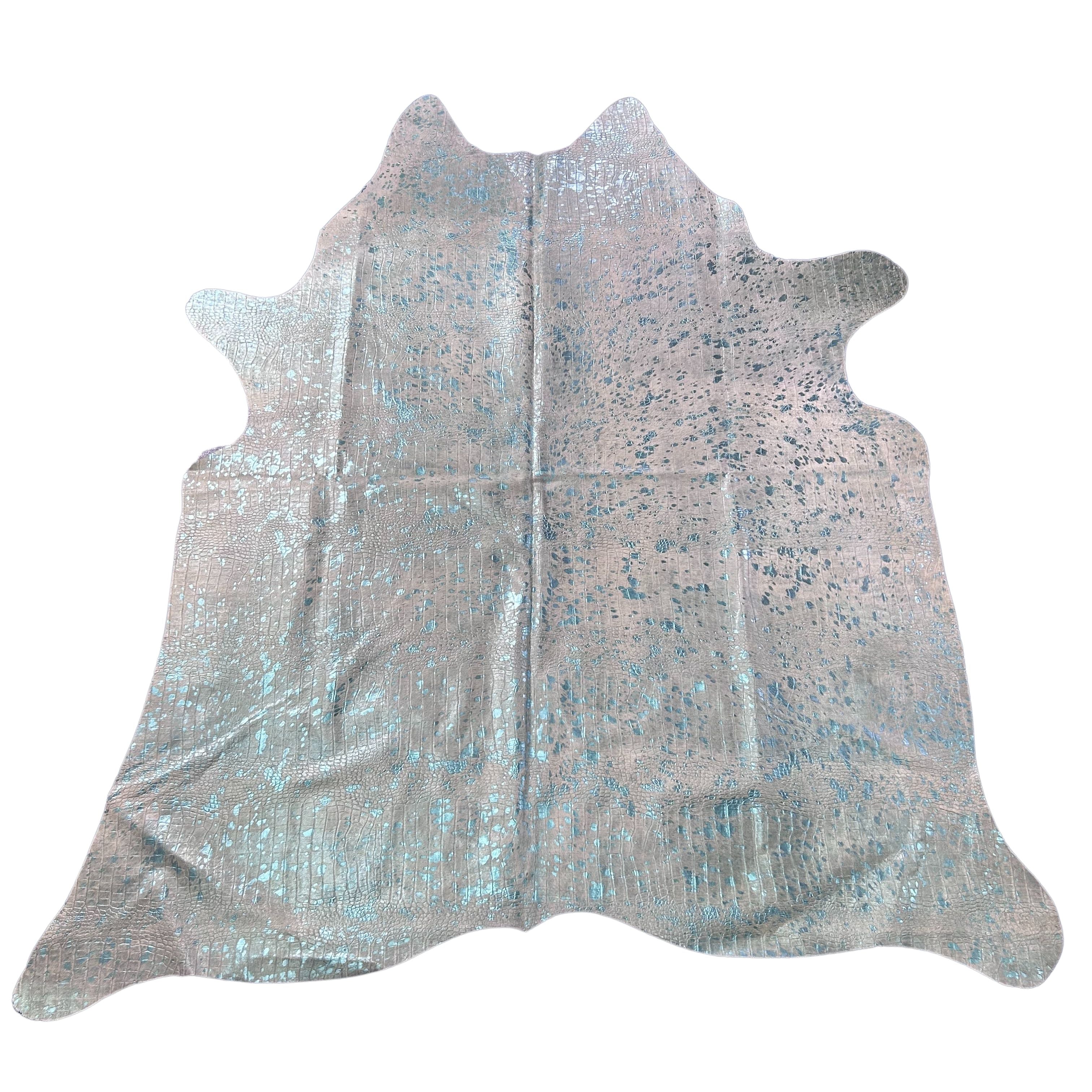 Turquoise Metallic Acid Washed Crocodile Embossed Cowhide Rug Size: 8x7 feet Y-157