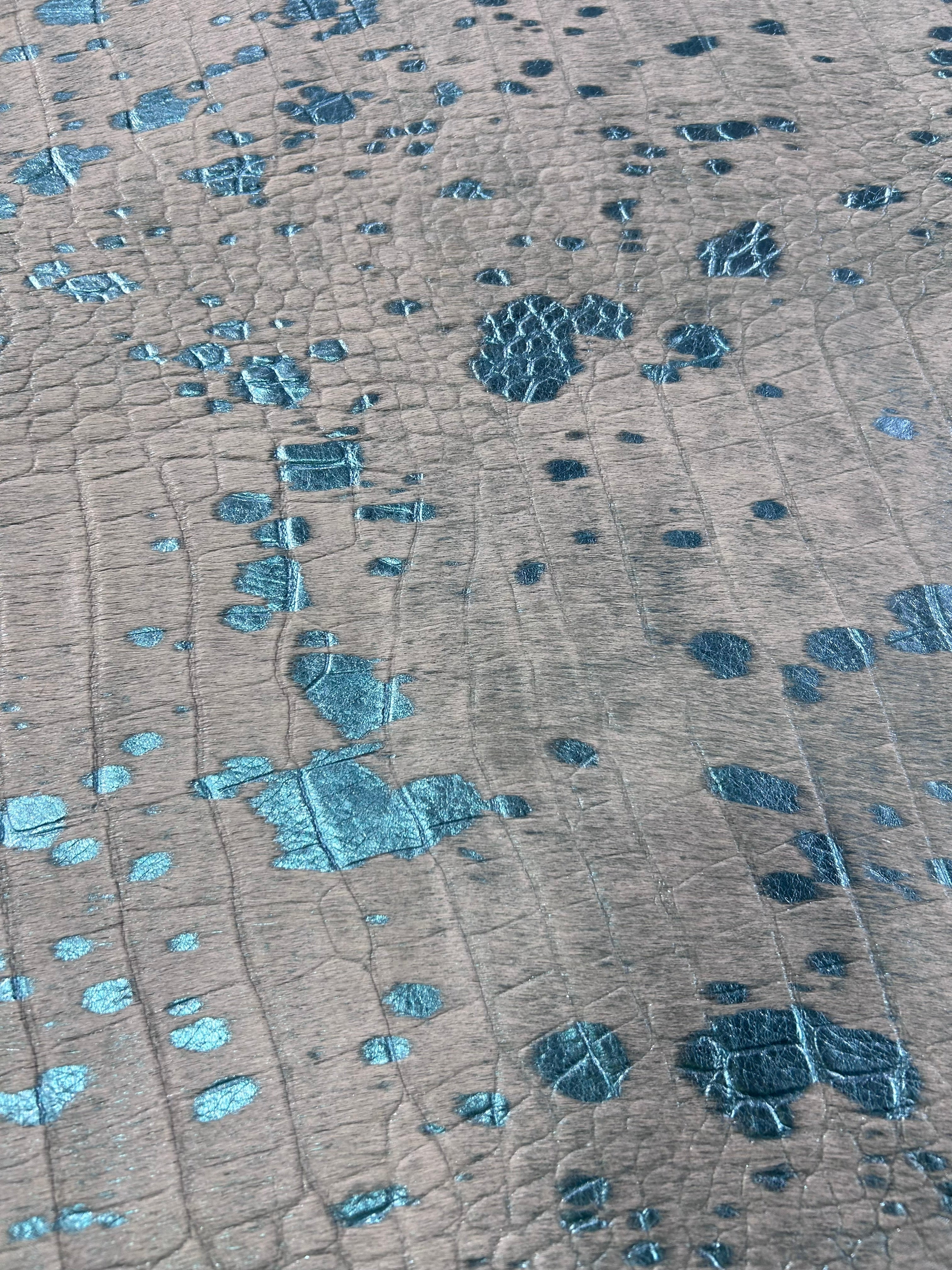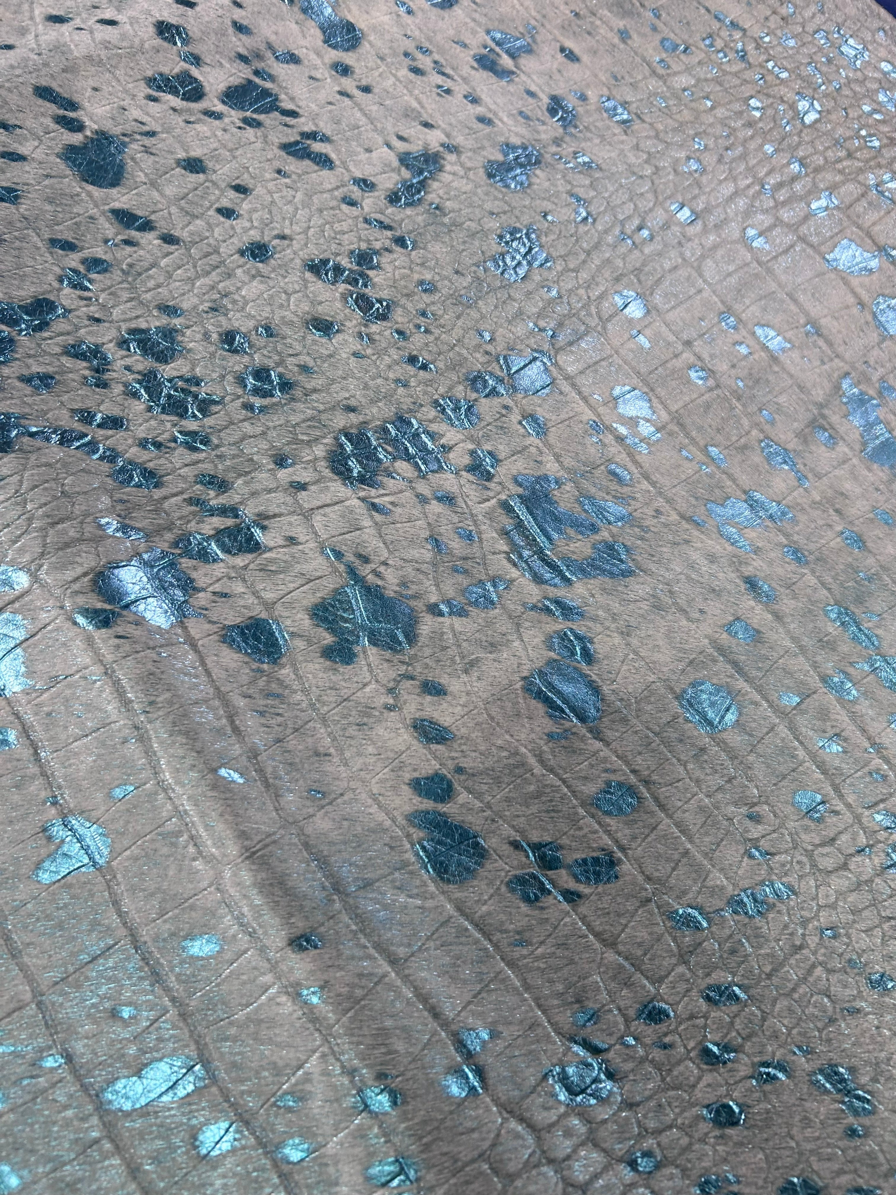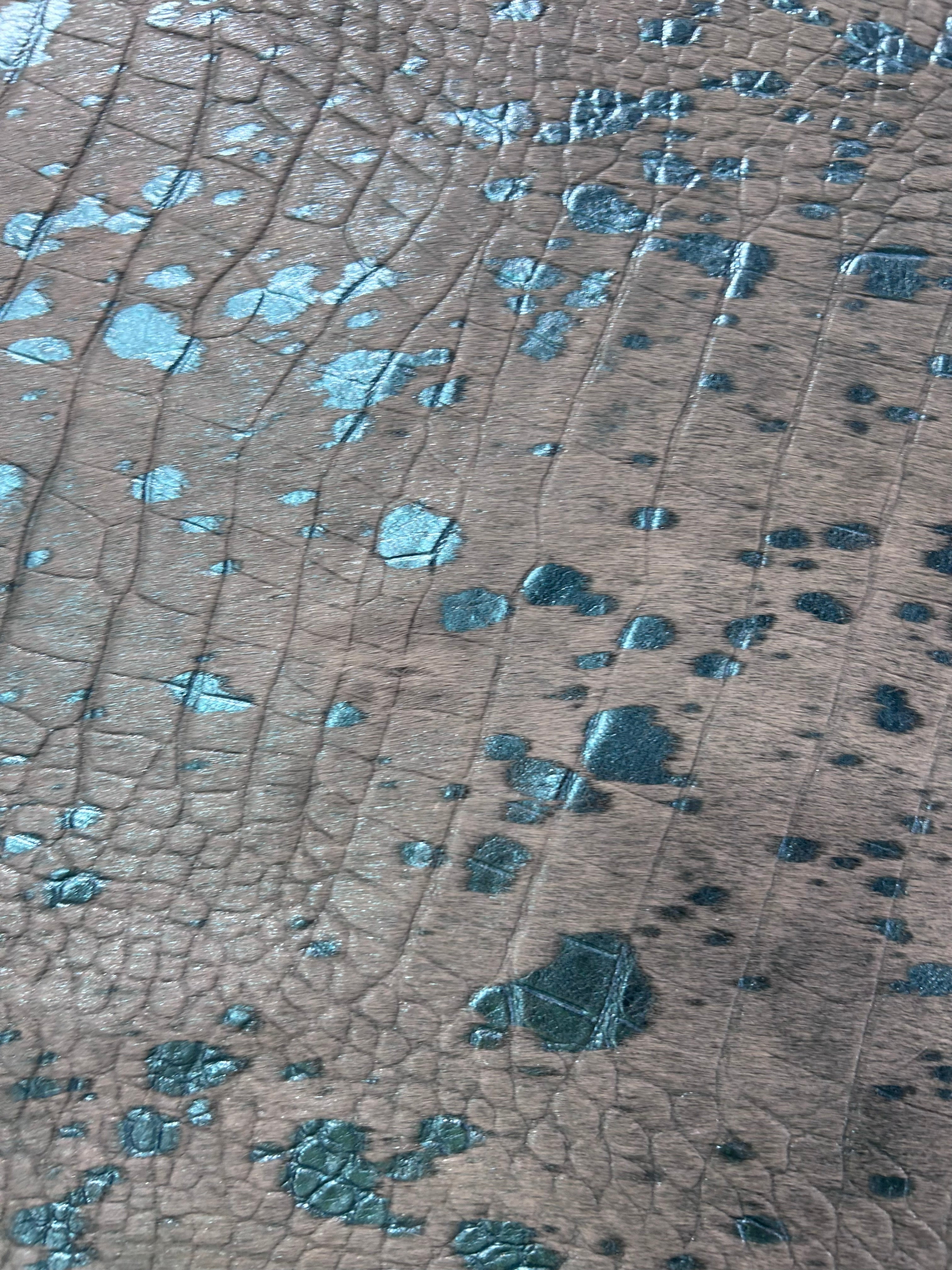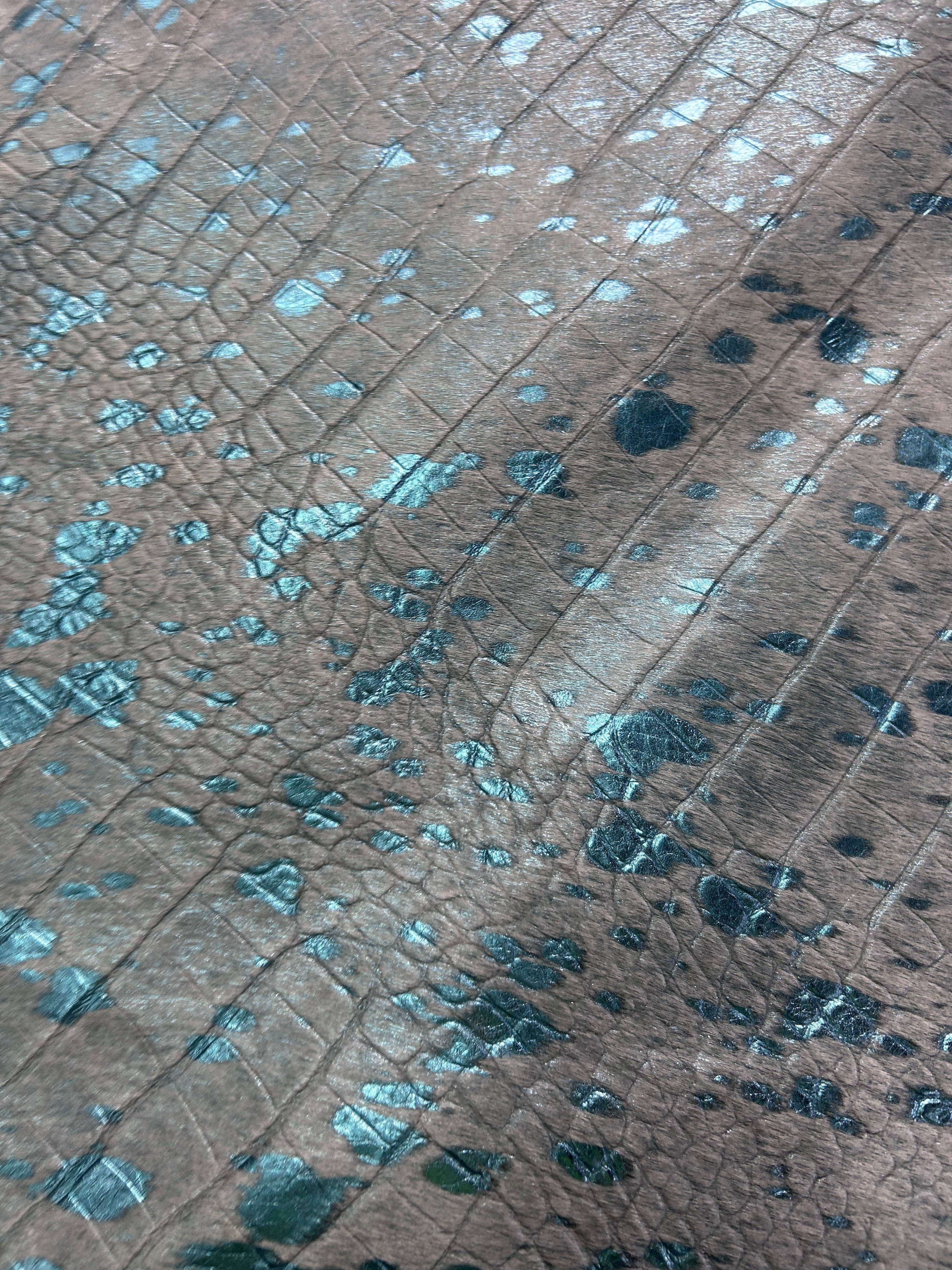 Transform your space with our stunning Metallic Acid Washed Cowhide Rug. Its unique pattern and rich colors will add a touch of elegance to any room. Made of high-quality cowhide, this rug is perfect for high-traffic areas and is sure to last for years to come.Other companies use generic photos and will ship you a similar rug. This is a photo of the exact skin we will ship and its measurements are accurate.
