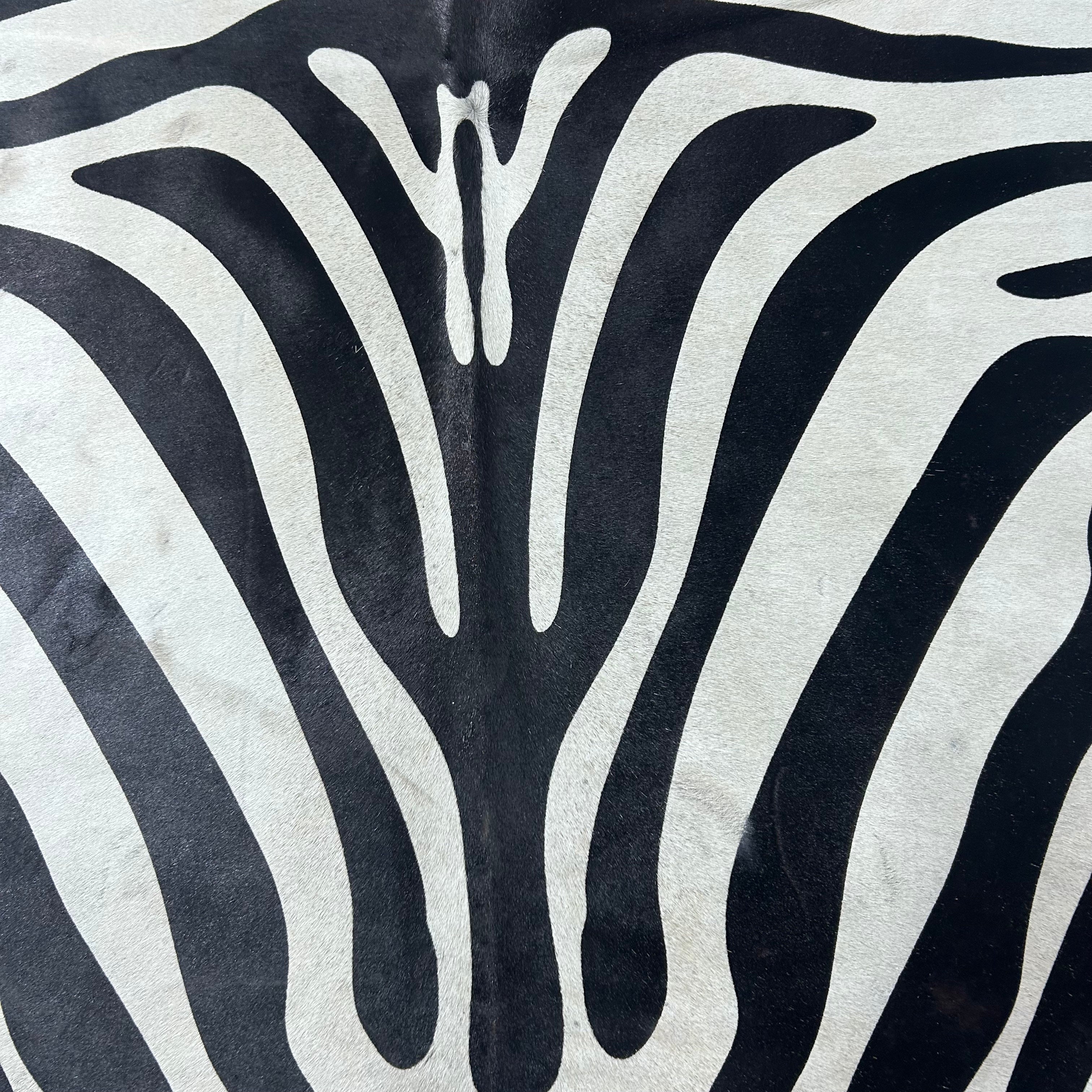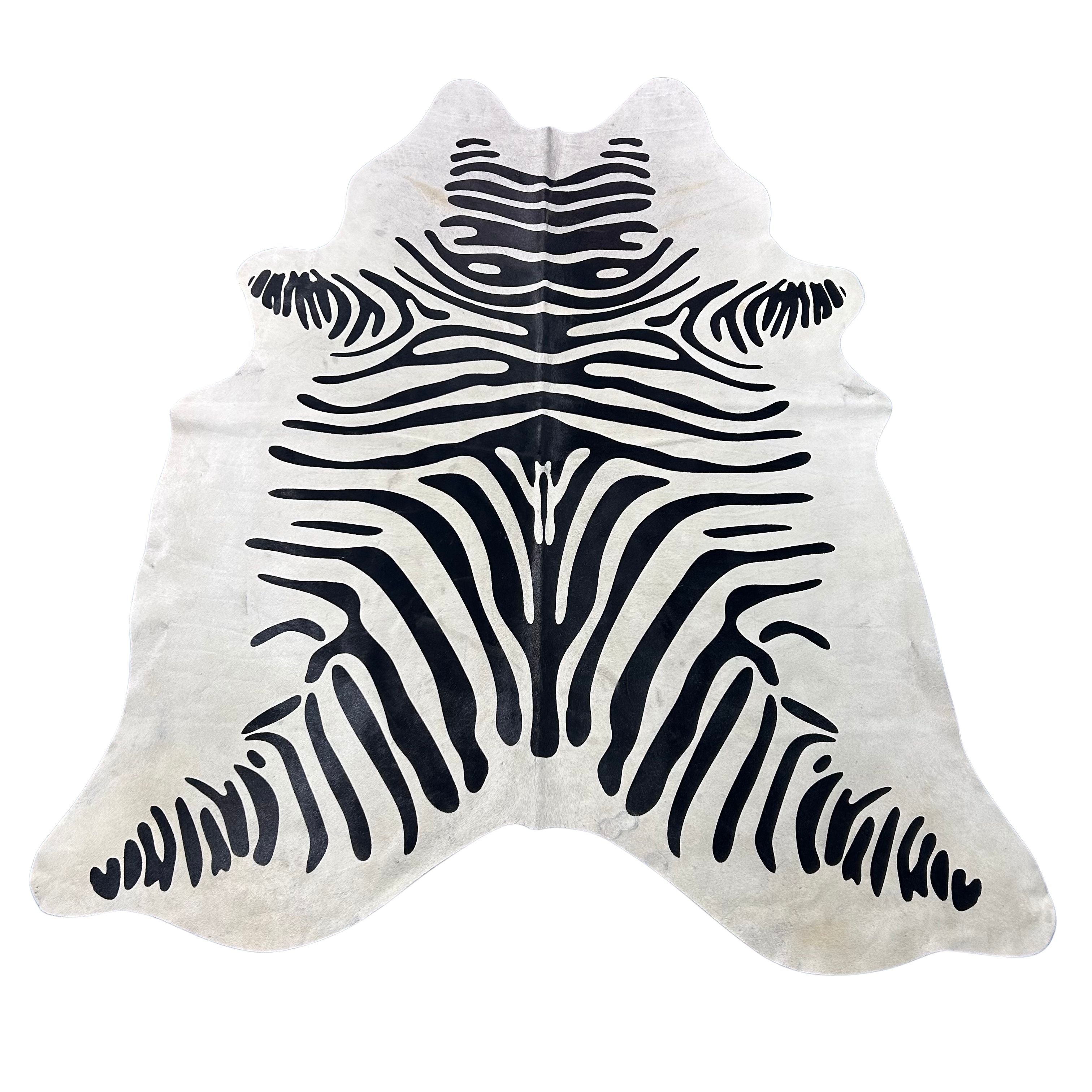 What a stunner! This is a beautiful Zebra Print Cowhide Rug (a few marks and beige in the neck/ fire brand). Perfectly cut!