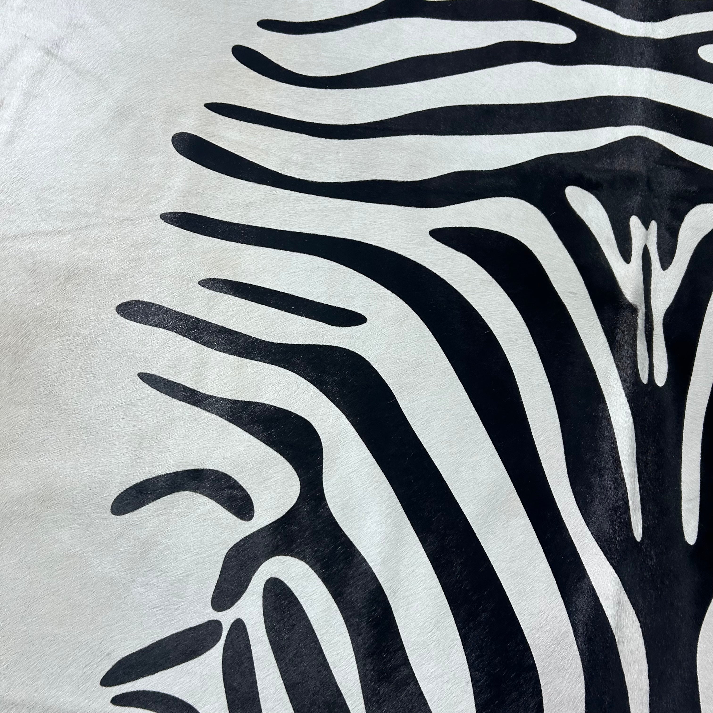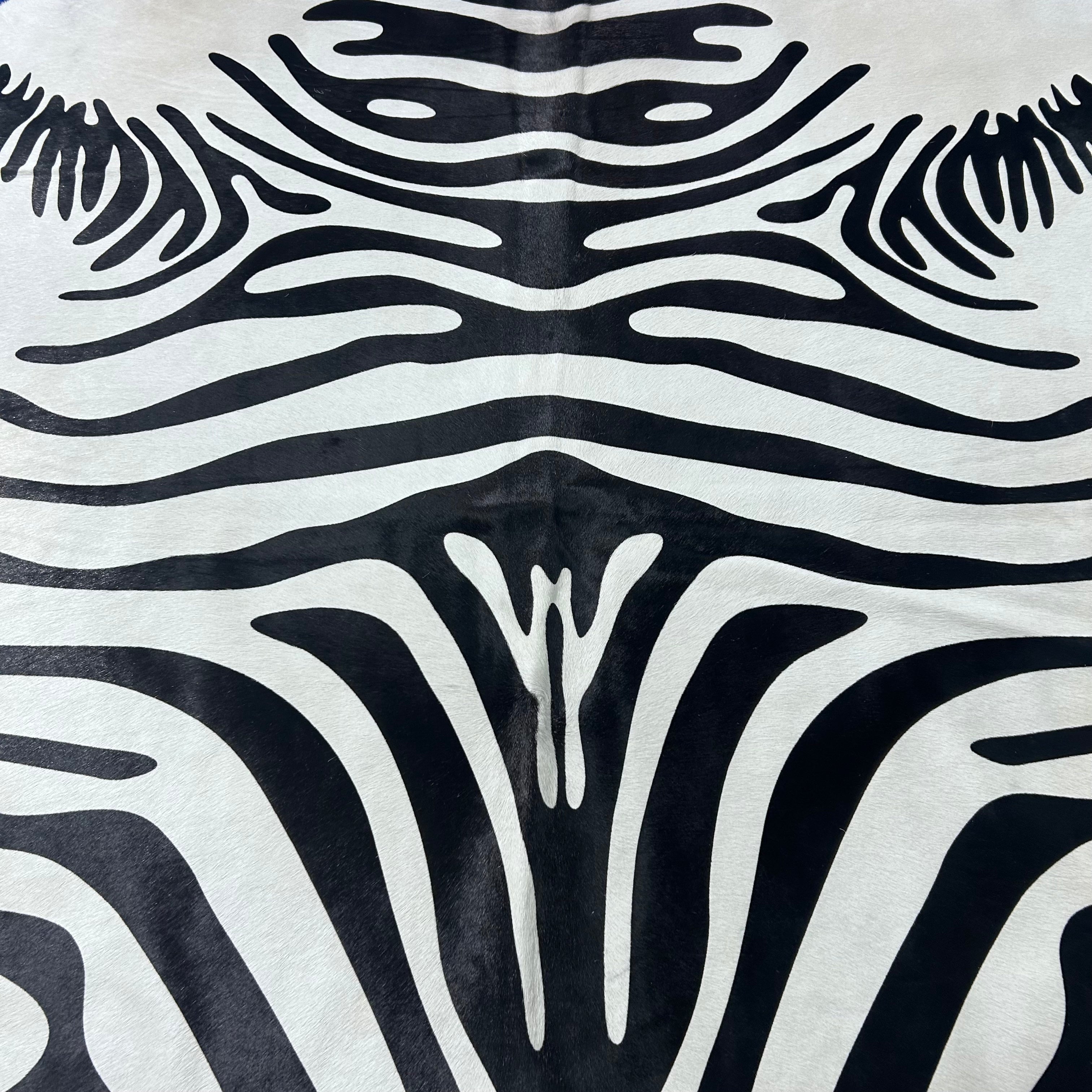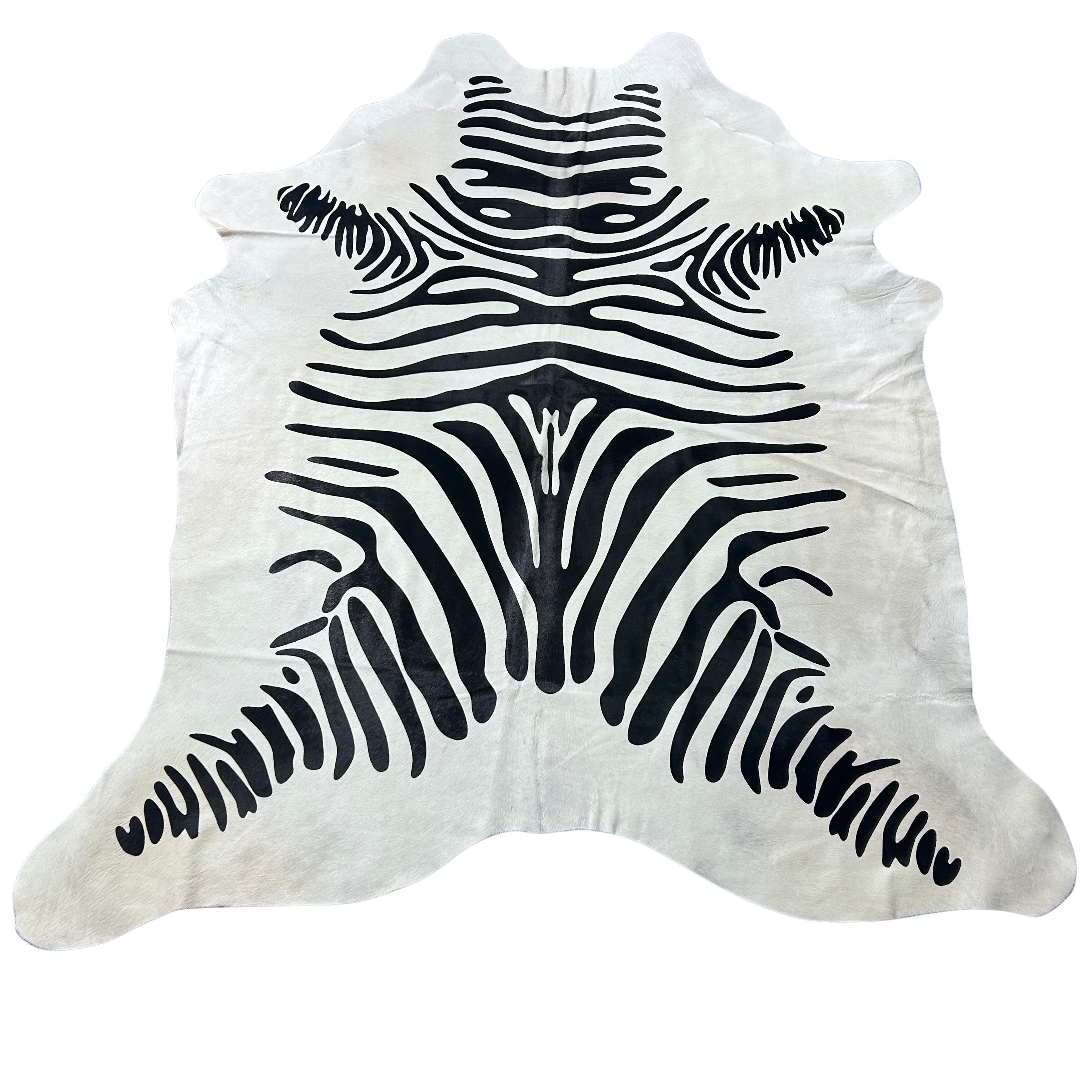 What a stunner! This is a beautiful Zebra Print Cowhide Rug (good quality). Perfectly cut!