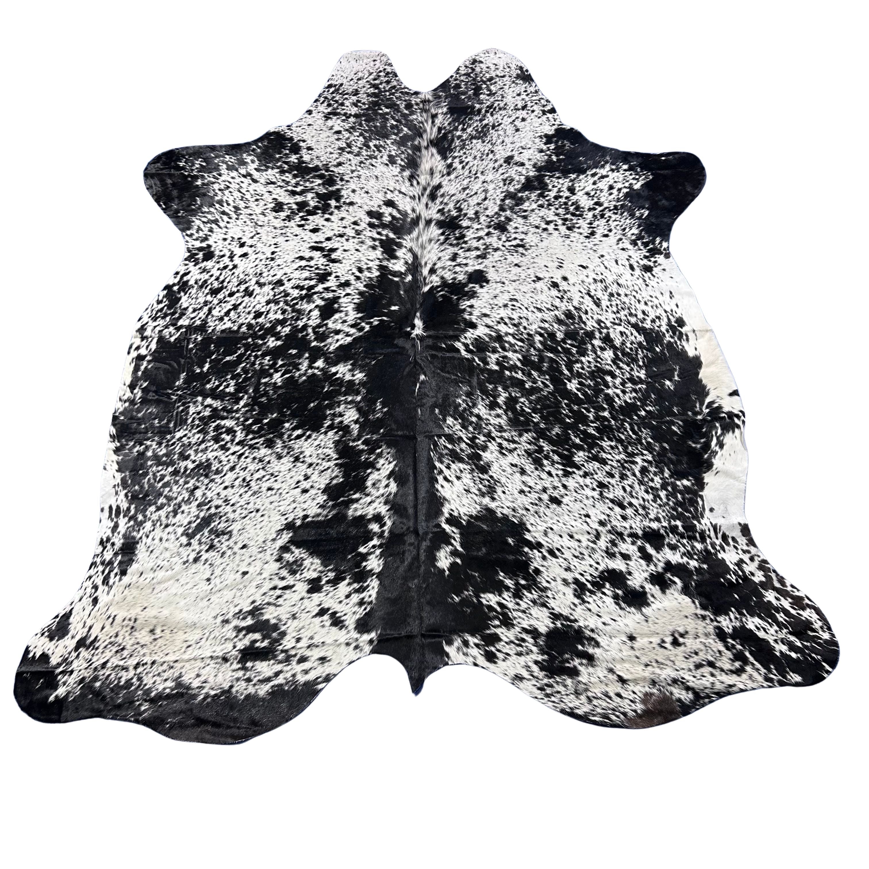 This is a beautiful Salt & Pepper Cowhide Rug (black and white). Please see attached pictures that show in detail the type and quality of the skin.