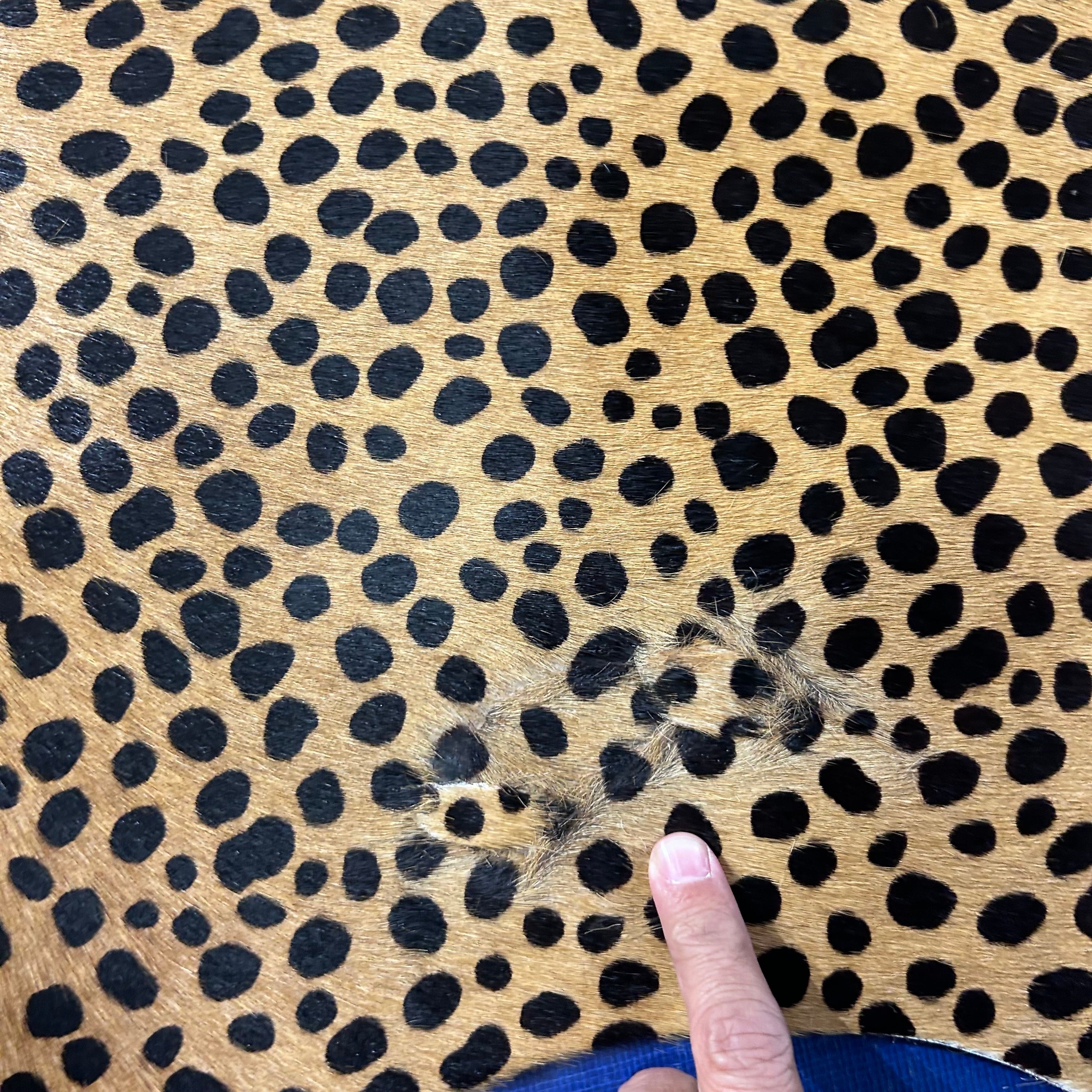What a stunner! This is a beautiful Cheetah Print Cowhide Rug. Perfectly cut!