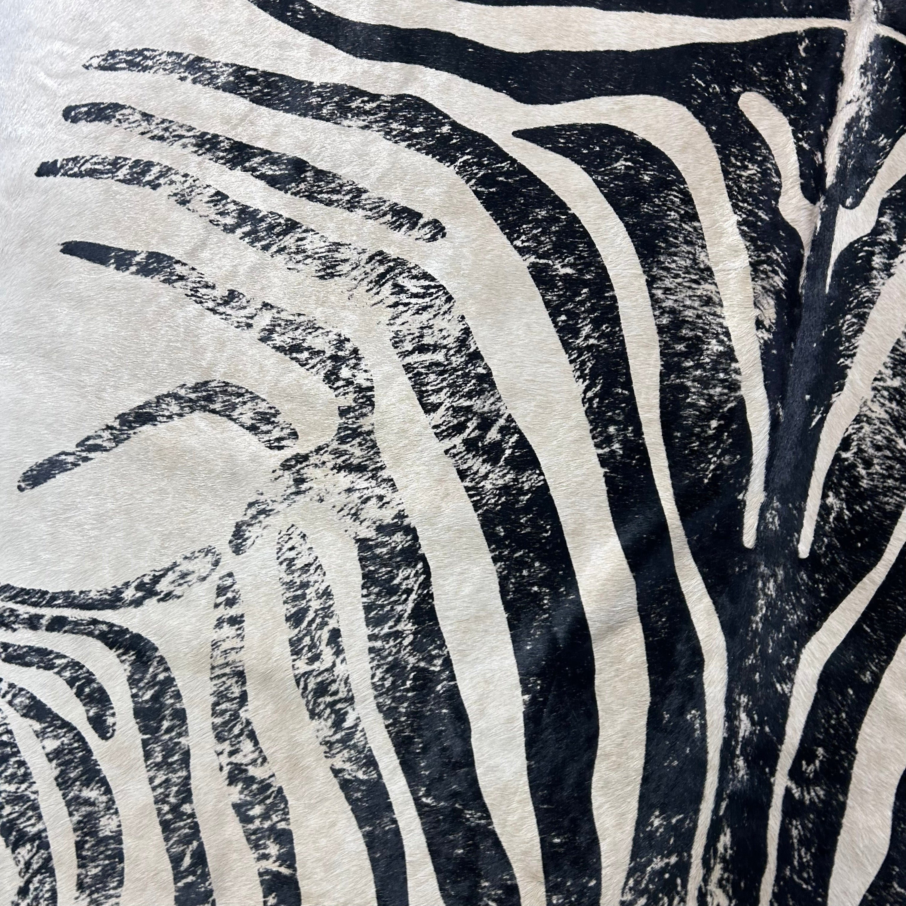 What a stunner! This is a beautiful Zebra Print Cowhide Rug. Perfectly cut!