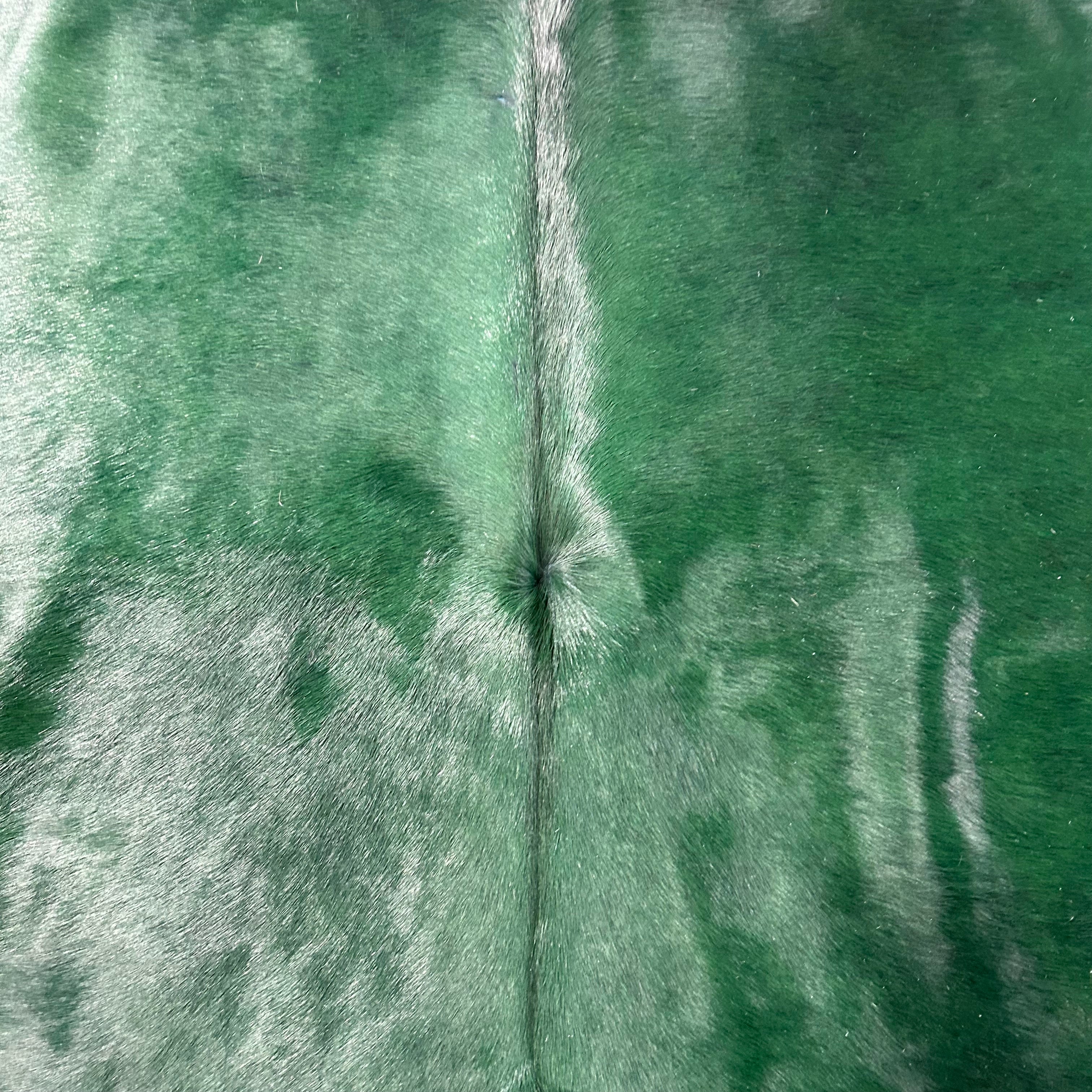 This is a beautiful Dyed Green Cowhide Rug. Please see attached pictures that show in detail the type and quality of the skin/fur. Other companies use generic photos and will ship you a similar rug. This is a photo of the exact skin we will ship and its measurements are accurate.