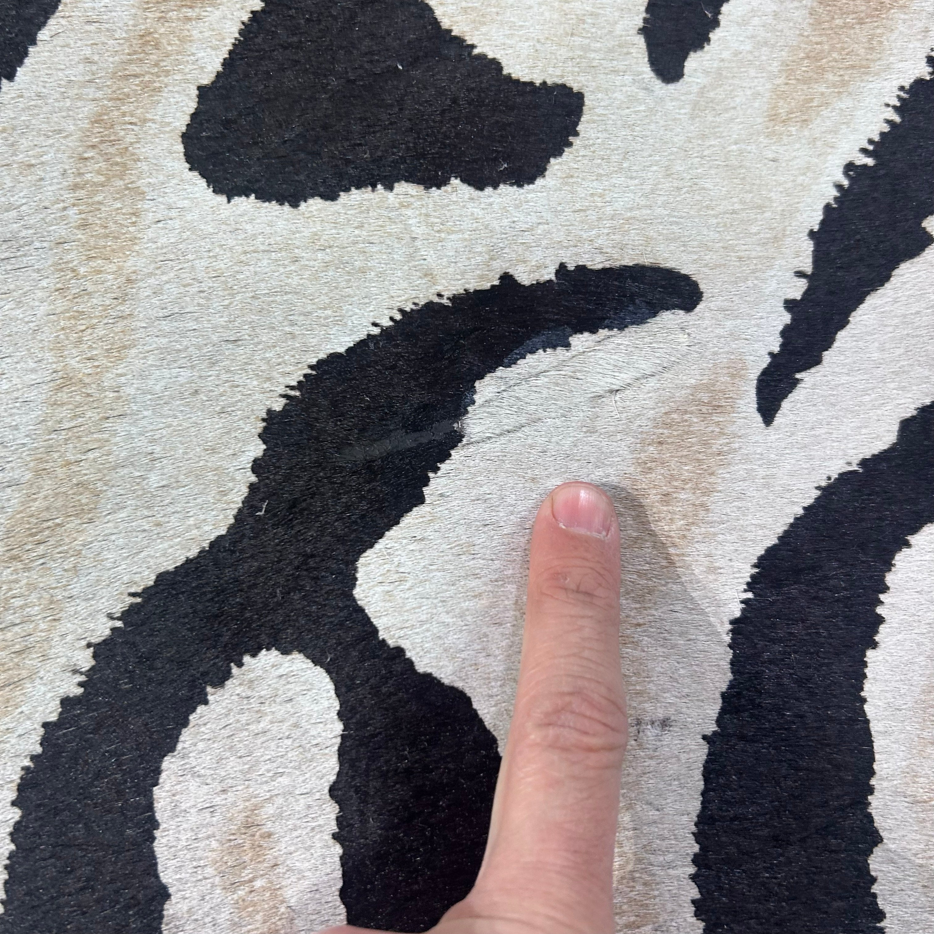 What a stunner! This is a beautiful Zebra Print Cowhide Rug. Perfectly cut!