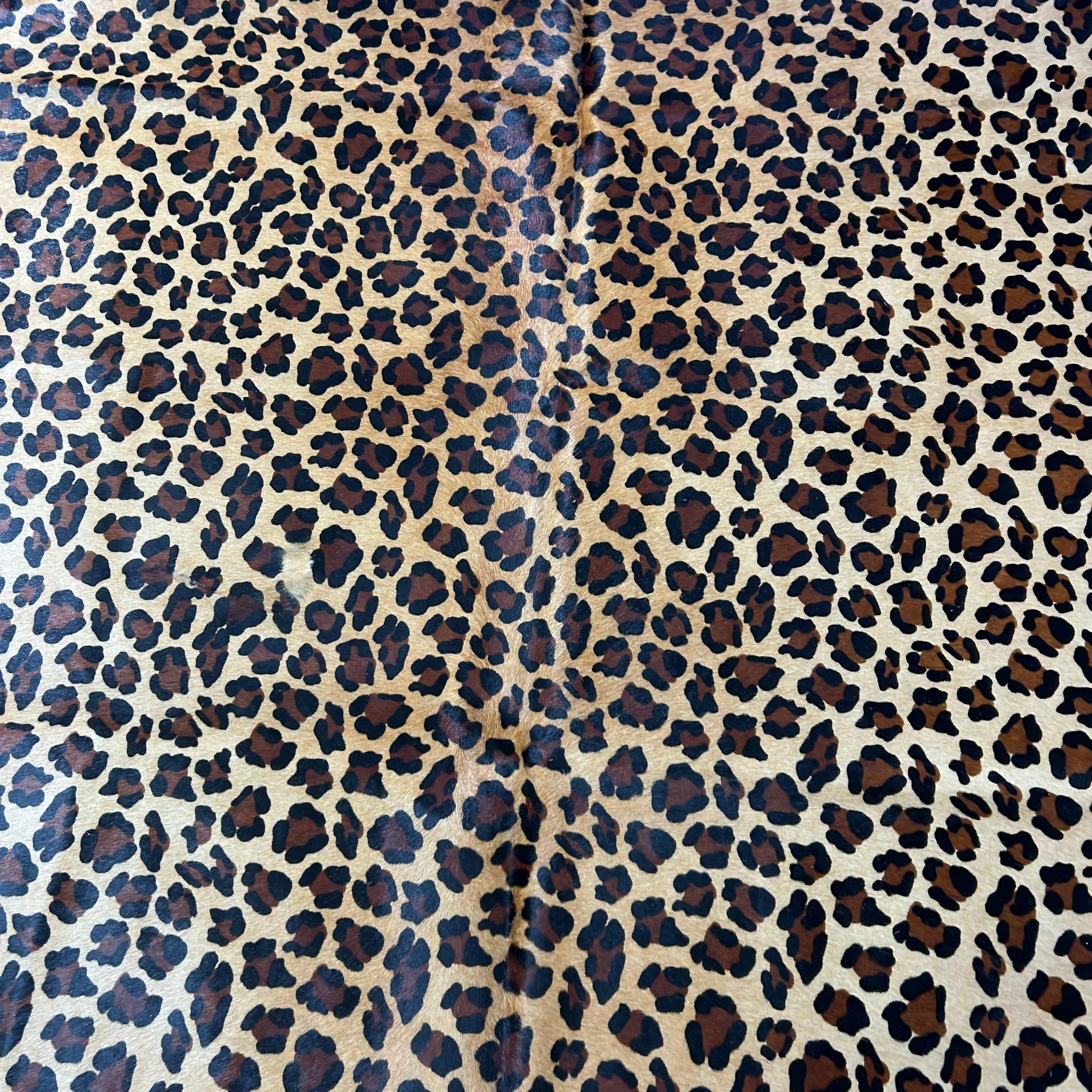 This is a beautiful leopard print cowhide rug. Please verify all photos for extra details. Very exotic cowhide! Perfect soft chrome tanning.