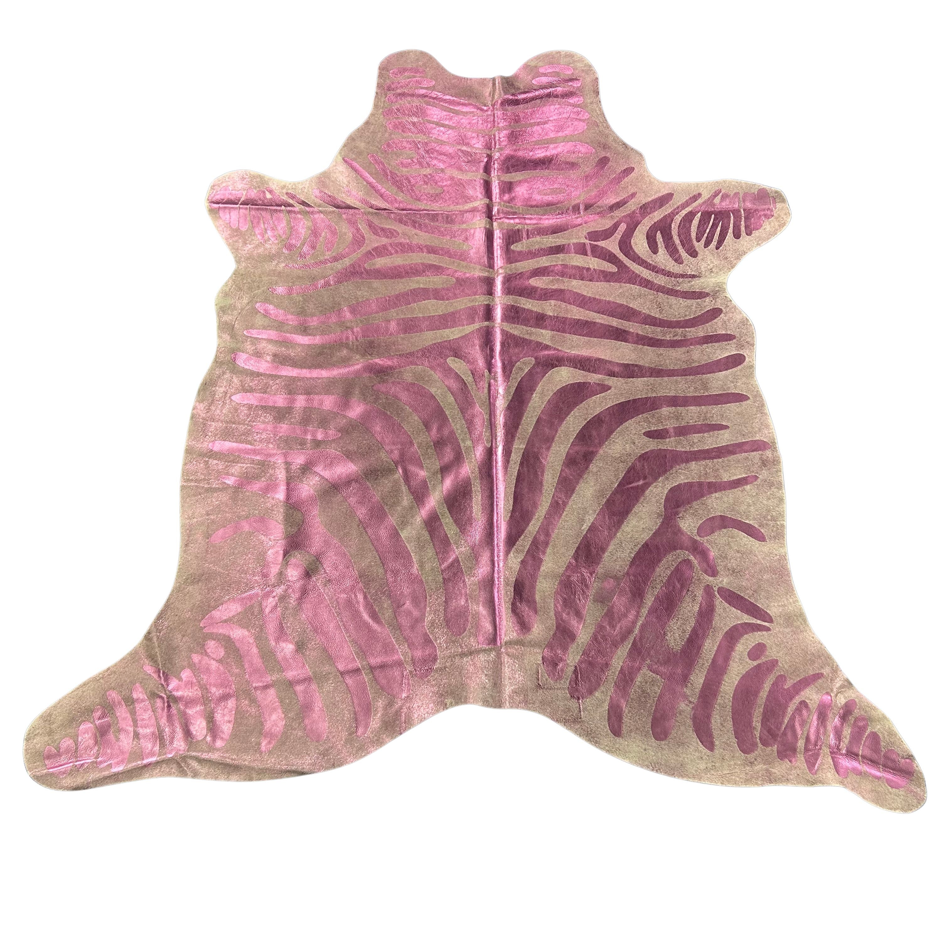 Pink Metallic Zebra Cowhide Rug Size: 6x6 feet J-041