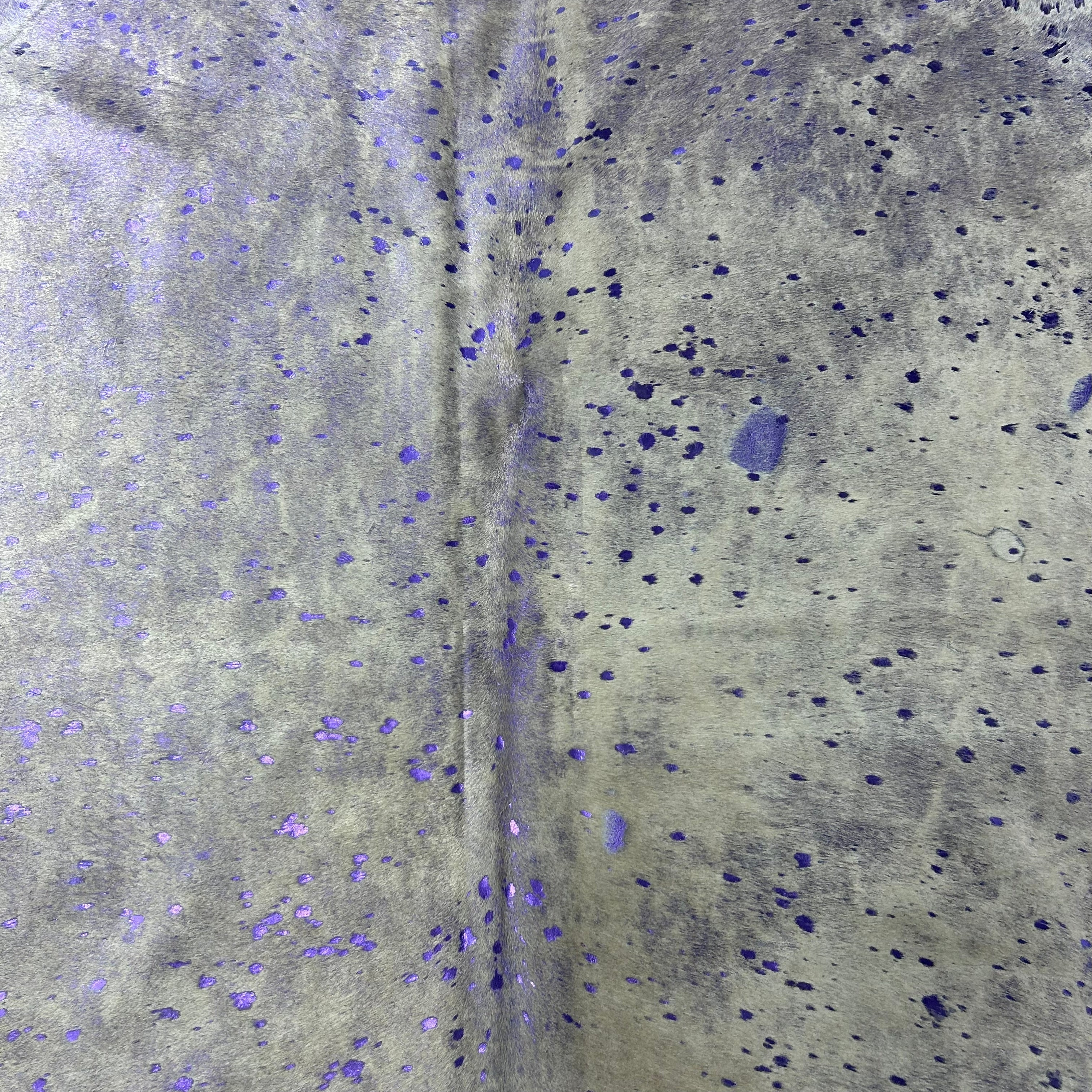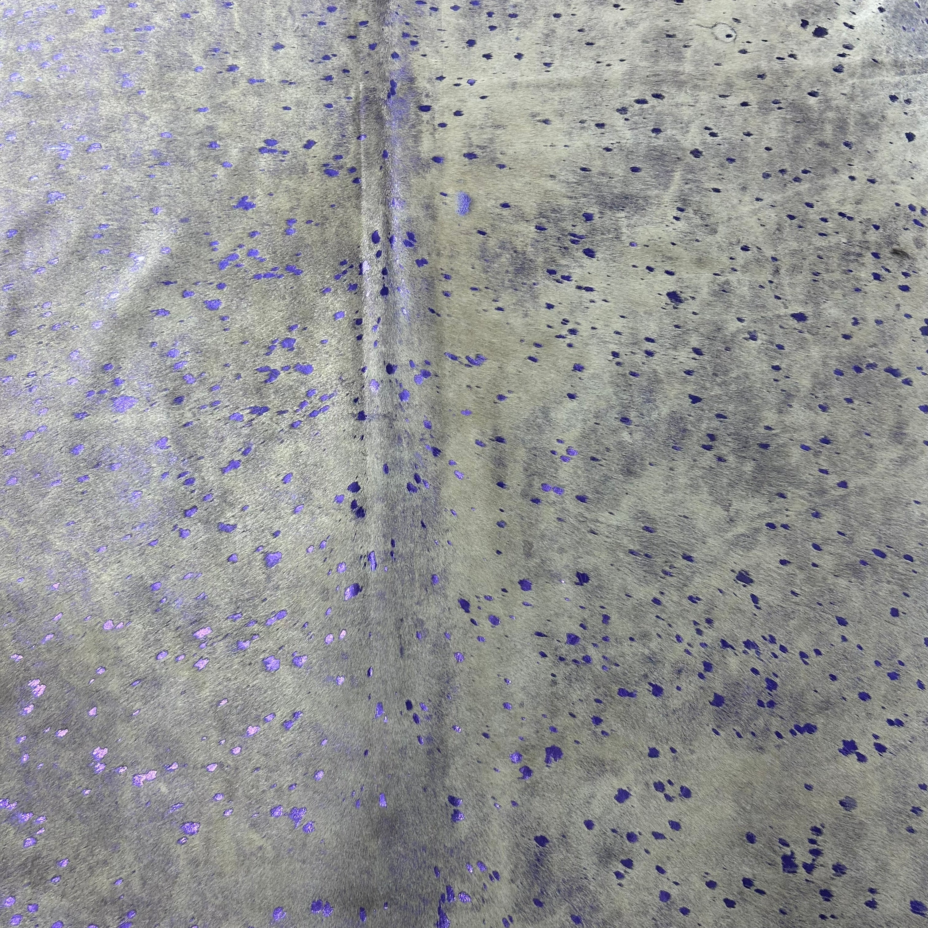Purple Metallic on Beige Background Cowhide Rug Size: 7.2x6 feet Y-149