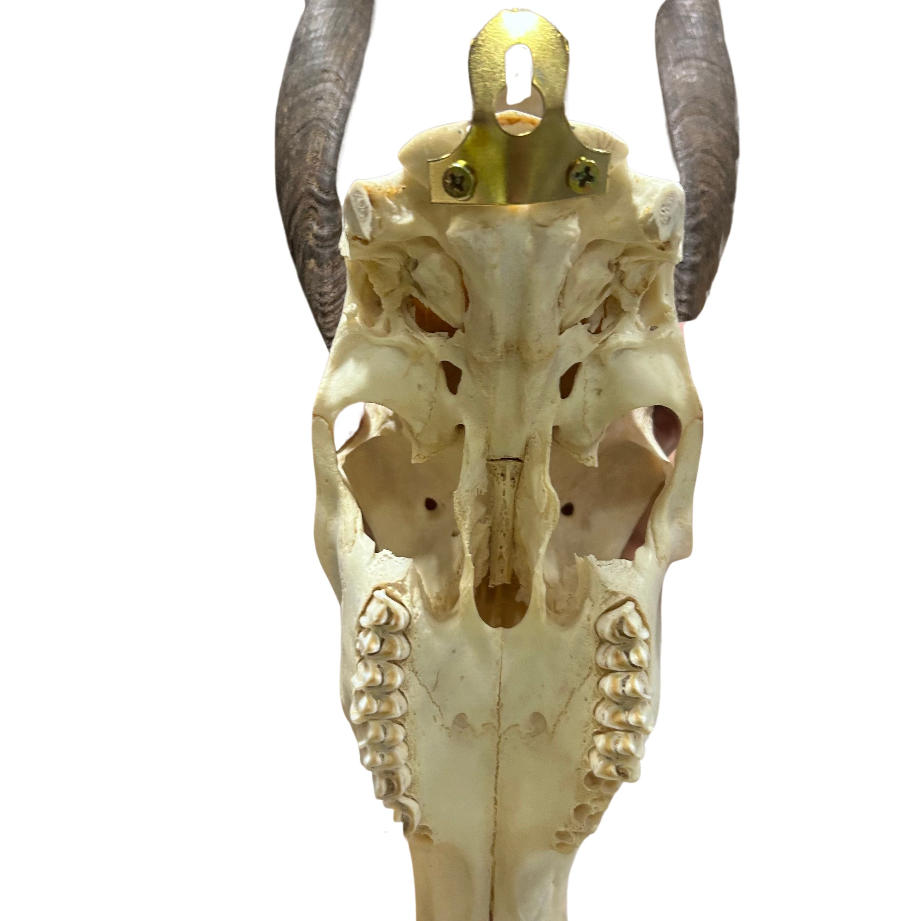 You will receive this exact one! Horns are 10" long.The bushbuck is an antelope found in sub-Saharan forests and brush. There are many sub-species of bushbuck throughout Africa. Males have horns and females do not. This particular skull is from South Africa.Add a unique touch to your home decor with this Real Bushbuck Skull. With horns measuring around 12 inches (measured around the curl), this real skull will make a bold statement in any room. Perfect for adding a touch of natural and exotic. The metal bracket on the back allows for easy wall hanging and the detachable horns allow us to ship the product to you very efficiently. You can also store it in a much safer fashion considering the horns completely detach from the skull occupying much less space.This skull has been completely cleaned following strict taxidermy standards, the horns have been cut from the base and hollowed out and a metal bracket is screwed onto the back to allow you to easily hang this beautiful skull on your wall (see 2nd and 3rd photos).