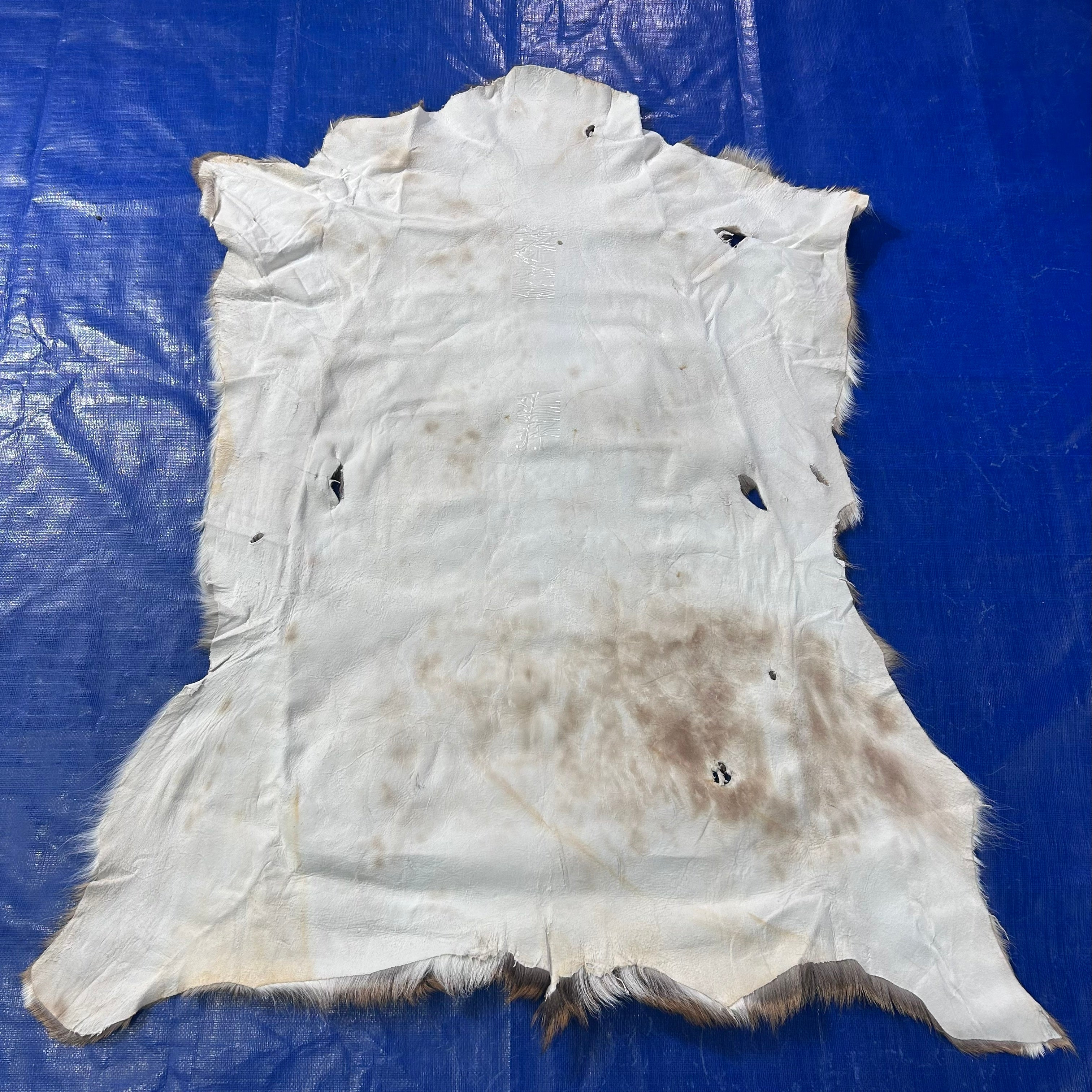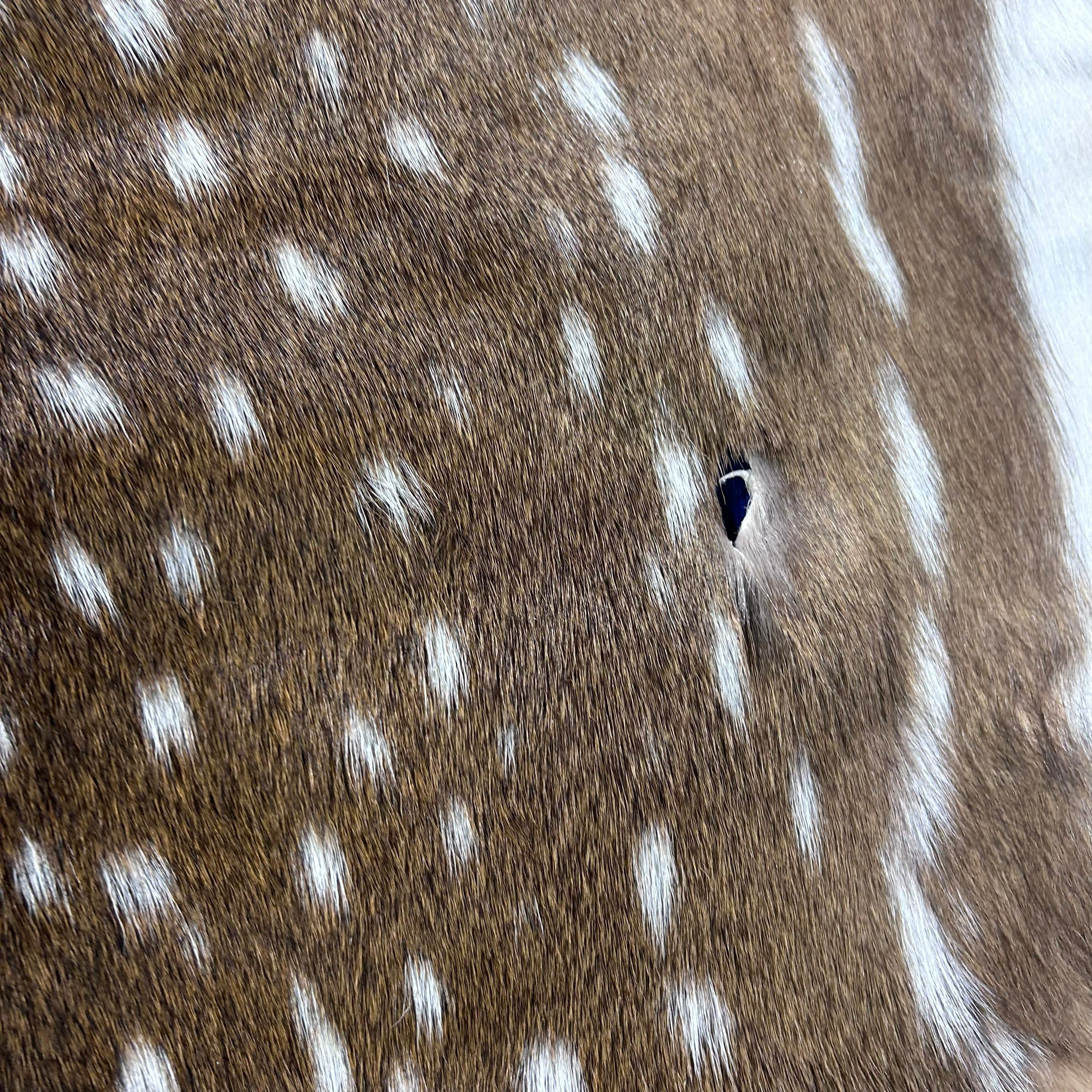 This is a nice axis deer skin rug that can be used as a floor rug or to manufacture products. Many of our clients use these skins for upholstery. Please see attached pictures that show in detail the type of hair and quality of the skin.