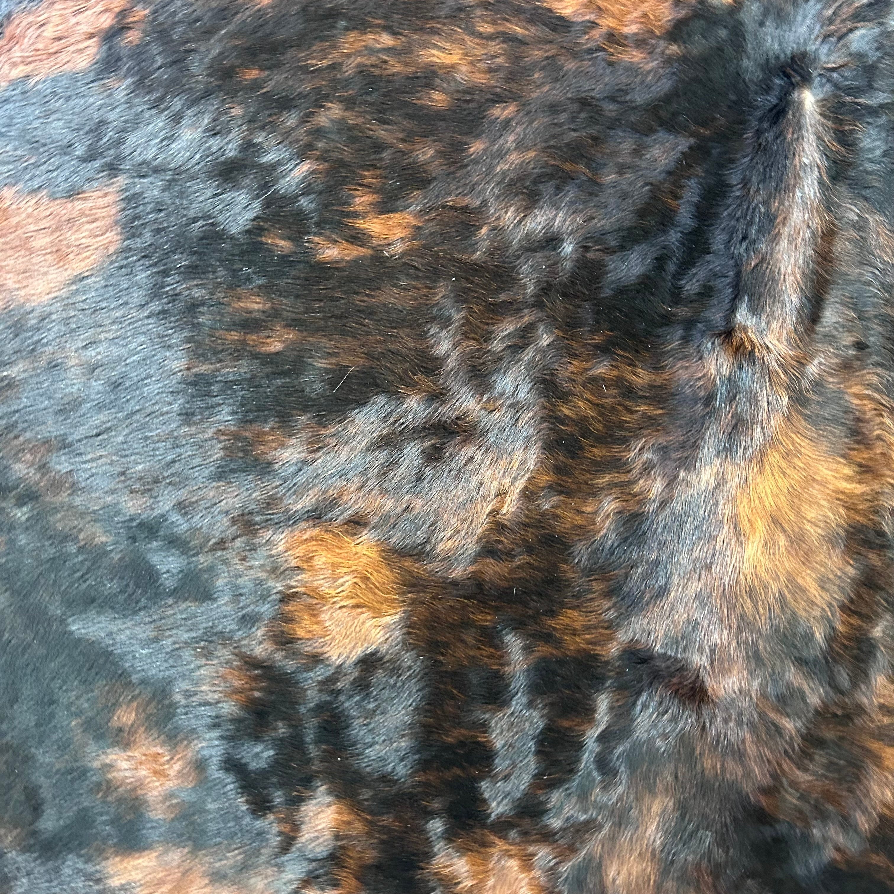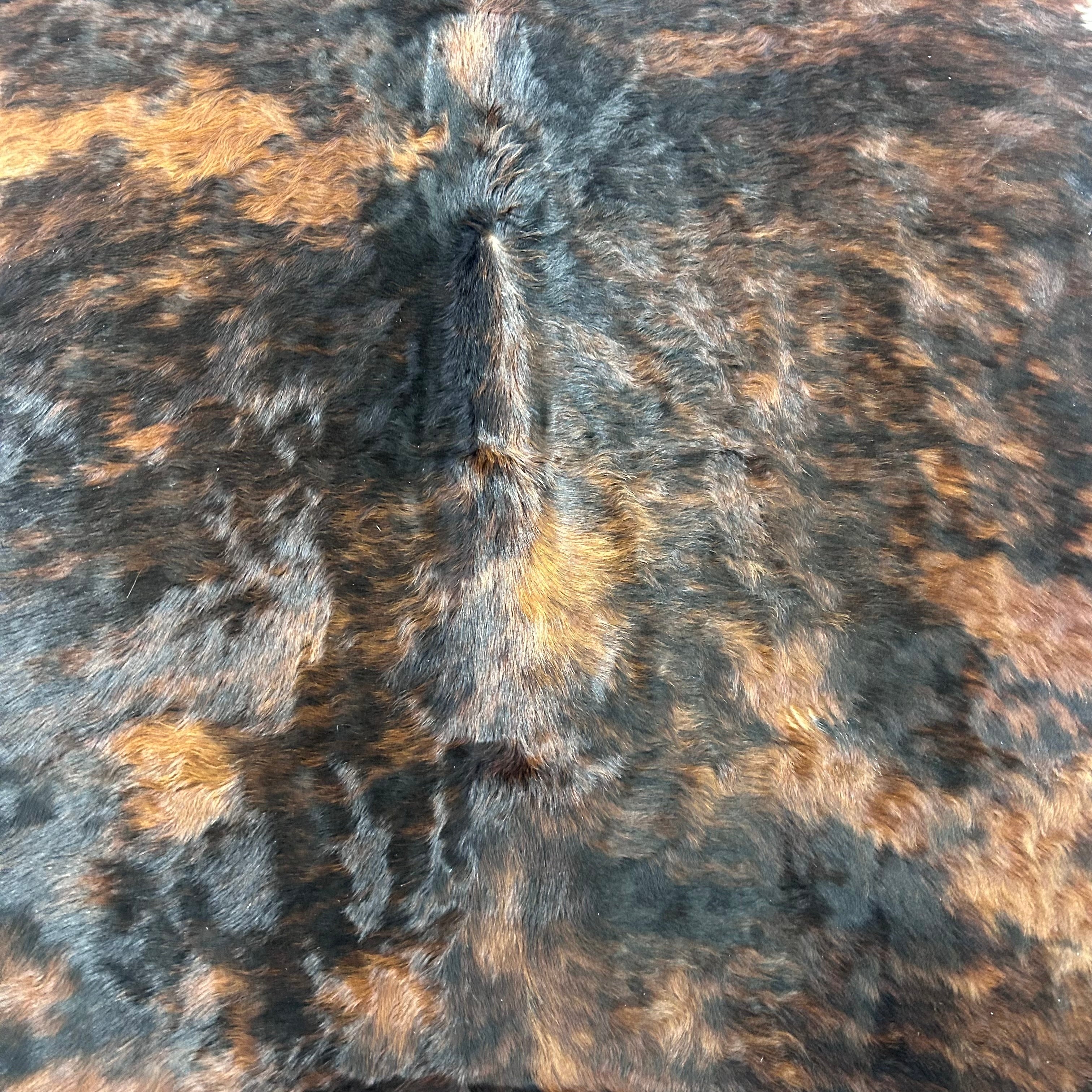 Tricolor Cowhide Rug (more solid tones of brindle/ long shiny hair) Size: 7.2x7 feet J-067 by Cowhides USA